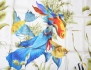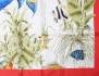 scarf "Pesci", siden, motiv av fiskar och växter, ljus botten med röd bård, gott skick, ca. 88x88 (en mindre obetydlig fläck)