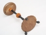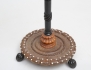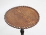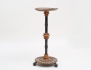 sent 1800-tal, skiva och fotplatta i ek, pärldekor i ben, svartlackerad stam med skuren dekor av alrot med pärlor, knoppformade tassfötter, höjd 79, diameter 33/36 (6 glaspärlor saknas, skivan med lagning)