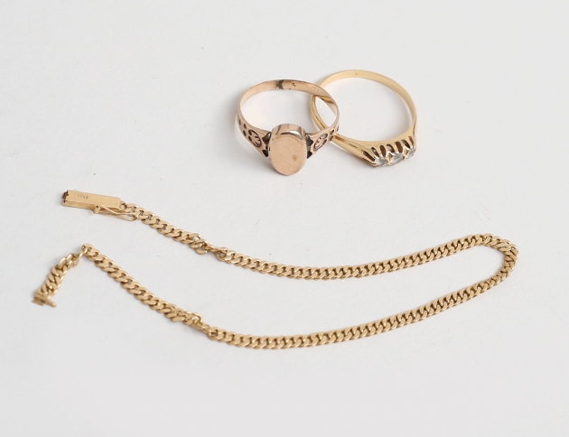 armband, ring med stenar (storlek 17,5/55) 18K, vikt 4,94 gram, antik ring, låghaltigt guld (storlek 16/51), vikt 1,47 gram