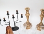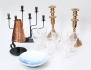 kandelaber svartlackerat smide och koppar, höjd 26,5, ljuslykta smide och koppar, höjd 23, ljusstakar 1 par 1980-tal, mässing, höjd 26, 6 vinglas signerade kosta, höjd 15 (2 med smärre nagg), skålfat "Julrosen" Danmark, diameter 17
