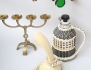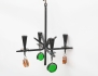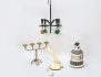 takkrona 1960/70-tal, smide och glas, för fyra ljus, höjd 115 (stearinrester), TV-kanna 1960/70-tal, cobratelefon, kandelaber mässing, märkt Skandipresent, för fyra ljus, höjd 23