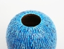 vas, chamotterat stengods, blå glasyr, stämpelmärkt, handdrejad, höjd 20 (mynning och fotring med obetydligt glasyrbortfall, botten med spår av dedikation 1941)