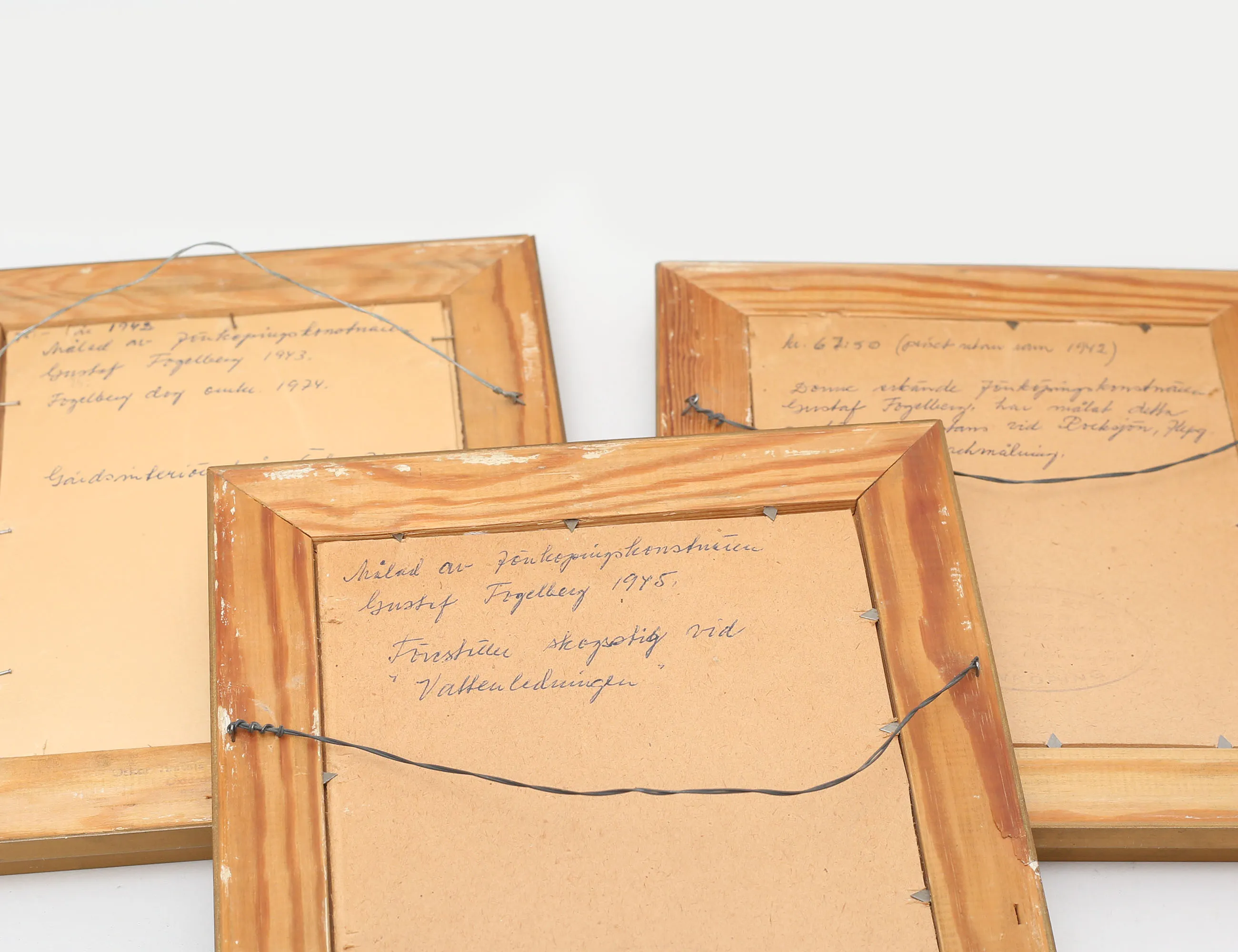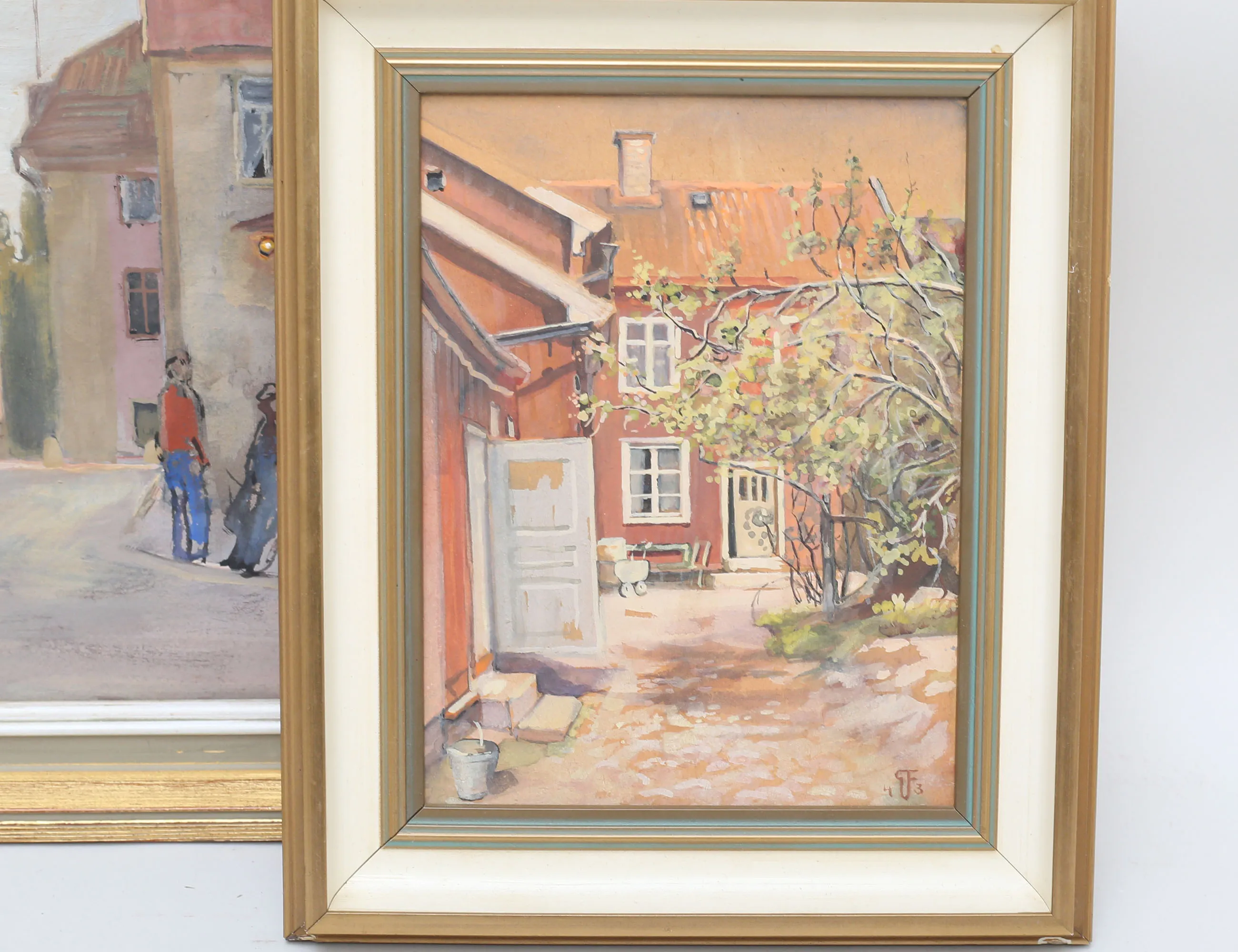 4 gouacher, "Apotekaregränd Jkpg", signerad -61, 33x41, samt motiv från Rocksjön, innergård Öster, Vattelnedningsparken, monogramsignerade 43-45, 22x16, rammått 28x23