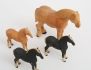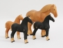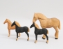 4 träskulpturer i form av hästar, varav 2 bemålade, höjd 13,5/9,5, bredd 14/9 (den stora "Leonard" med nagg på örat, en mindre med nagg på hov samt öra, en målad med lagat ben, den andra målade med lagad hals samt nagg på ett öra)