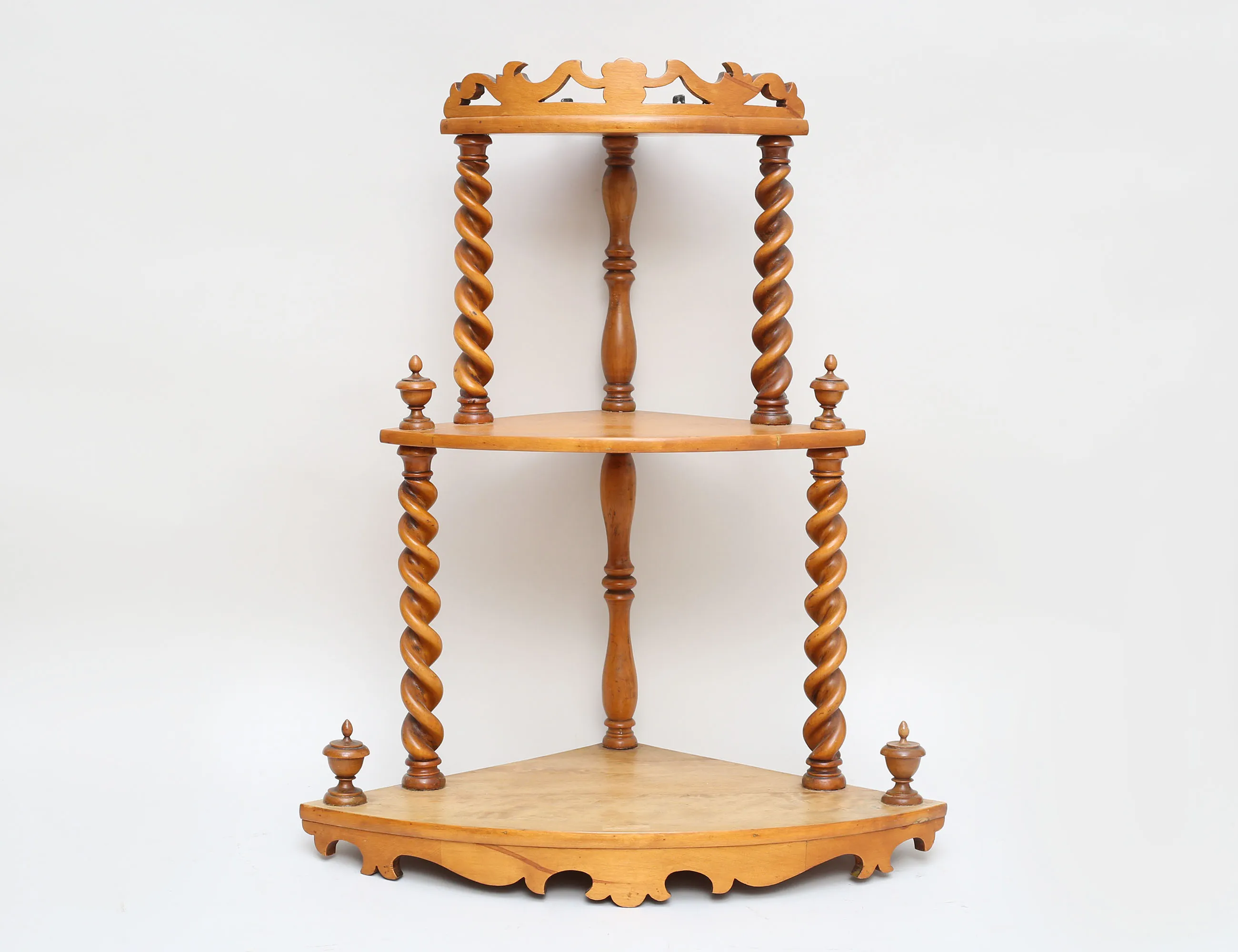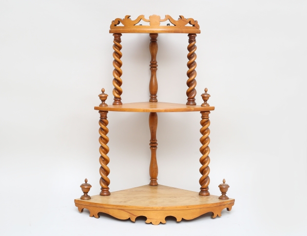 honungsgul björk, svarvad dekor, tre hyllplan, höjd 67, bredd 55