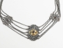 Österrike/Tyskland, silver, stämplad CB 835, fyra infattade fasettslipade granater, genombruten dekor delvis förgyllt, ärtlänkar, ursprungligt originalskick, hög kvalité, längd 42