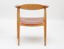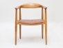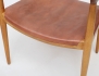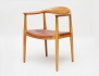 karmstol "The Chair" modell 501, 1950-tal, kallstämpel Johannes Hansen Copenhagen made in Denmark , ek, sits i läder, modellen formgiven 1949, höjd 75 (obetydligt bruksslitage, sits professionellt omarbetad från ursprunglig flätad sits)