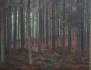 oljemålning på duk, "Granskogsinteriör Ringsjötrakten", signerad 1939, atergo utställningsetikett, 96x73, rammått 105x83