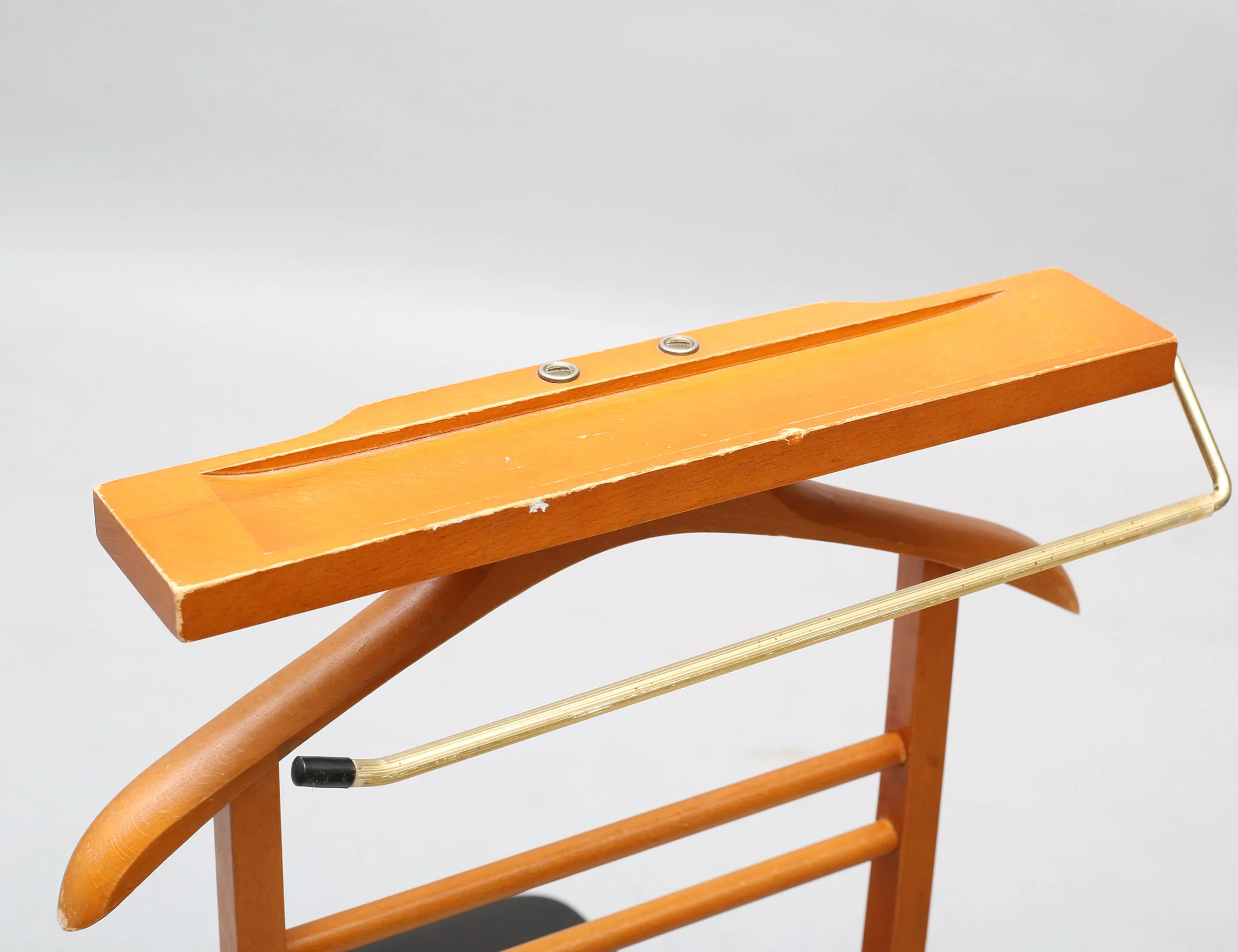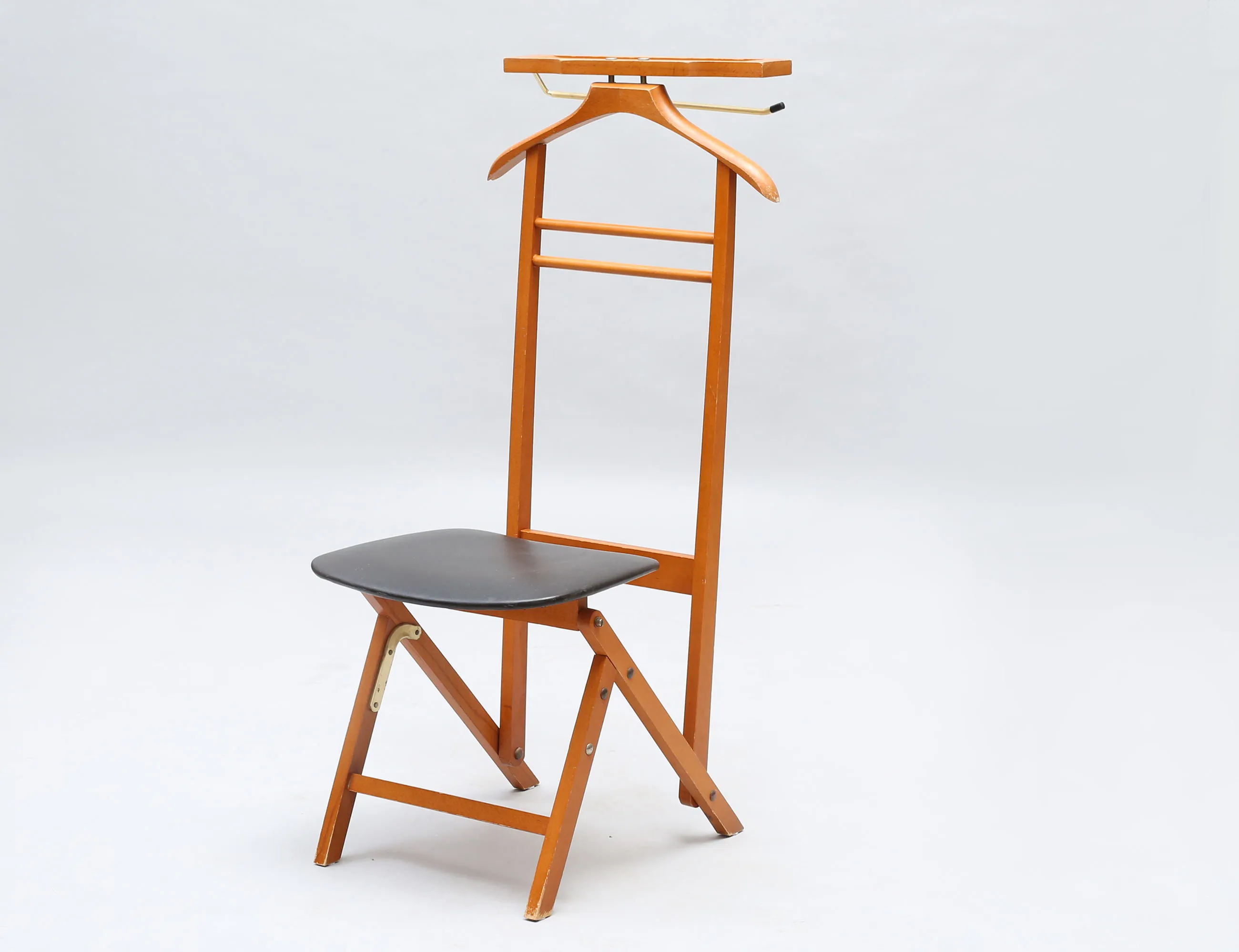 Fratelli Reguitti Italien, märkt FR, betsat lövträ, sits i läderimitation, höjd 102, bredd 45 (sitsen med smärre reva, bruksslitage)
