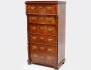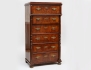 mahogny och rotfaner, sex lådor, dekor av pilastrar, nyckelskyltar och beslag i ornamenterad mässing, höjd 148, bredd 78, djup 51 (bruksslitage, smärre fanerbortfall)