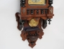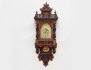 valnöt, svarvad dekor, delvis svartlackerad, urtavla i mässing märkt Gustav Becker, 108x40 (dekordel saknas, retuscherad)