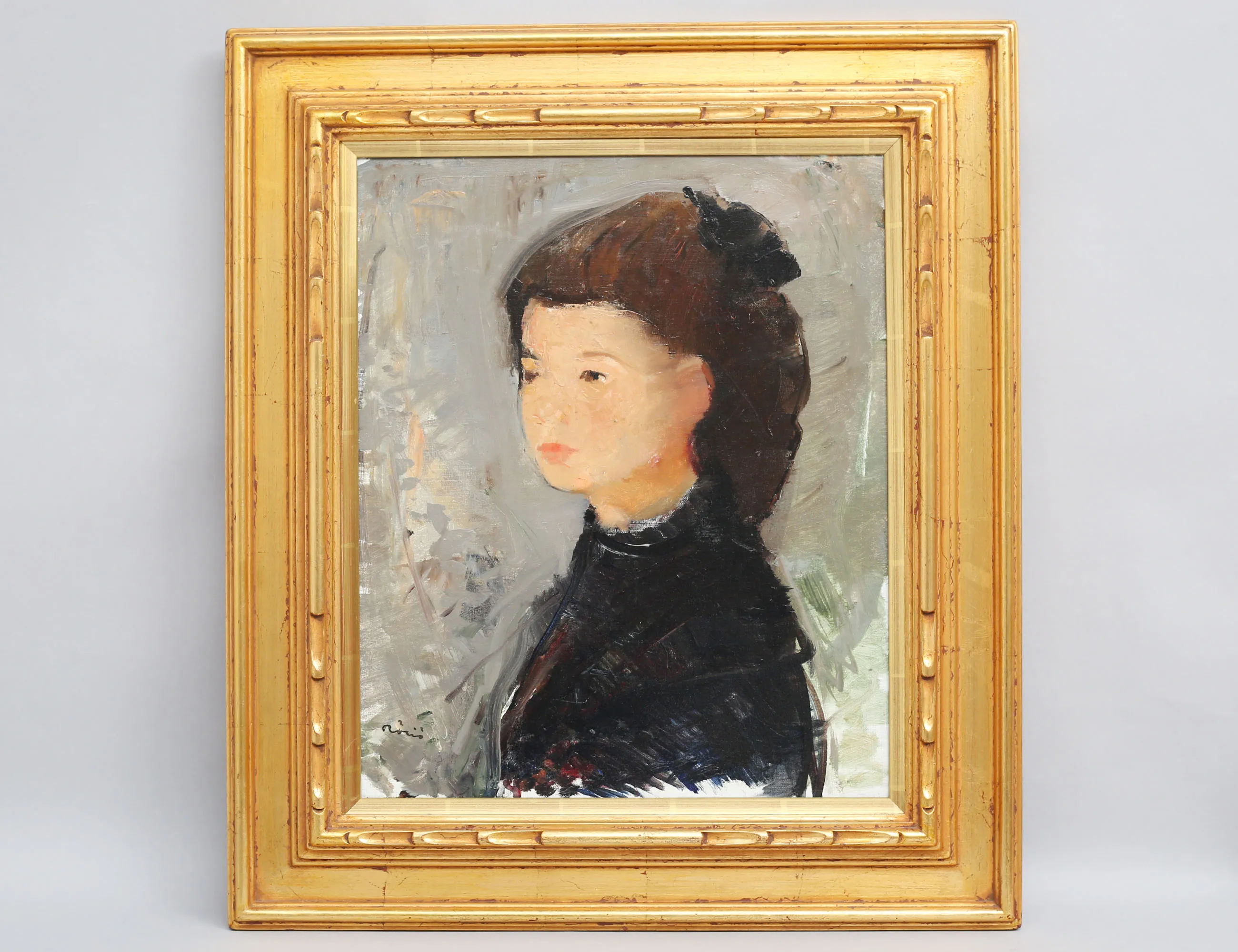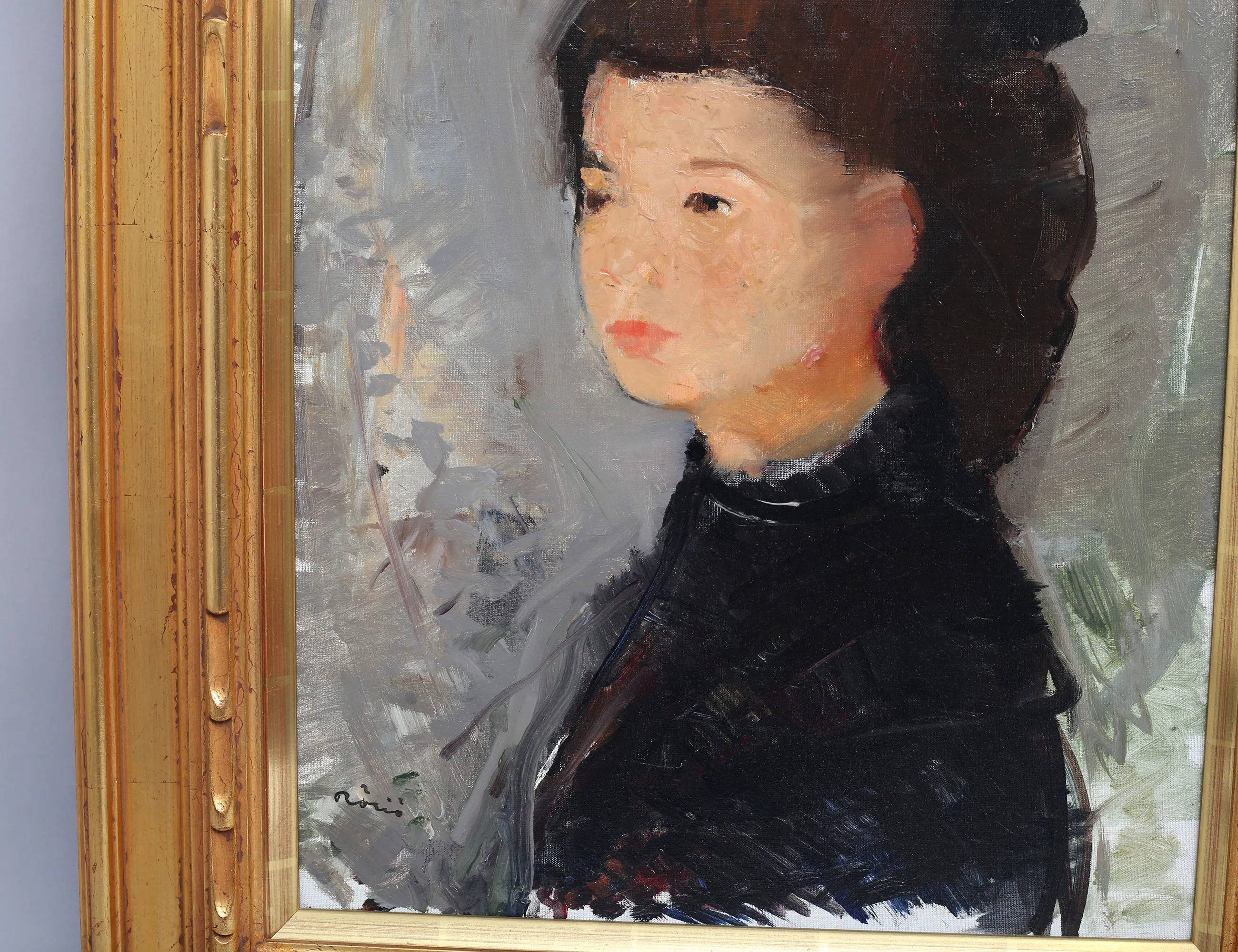 oljemålning på duk, porträtt av ung kvinna, signerad, 46x38, rammått 64x57