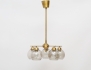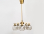 takarmatur 1960/70-tal, Westal Bankeryd, stomme i mässing, 5 ljusarmar med kupor i röktonat glas, höjd 75, diameter ca. 50