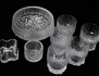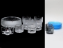 4 assietter "Kartehelmi" Oiva Toikka, diameter 14, skål "Ultima Thule" Tapio Wirkkala, diameter 19, 5 glas "Aslak" Timo Sarpaneva, höjd 10, ljuslykta "Savoy" Alvar Aalto, höjd 5, 1 par ljuslyktor Marimekko, höjd 6, ljuslykta höjd 6