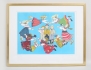 färglitografi 104/330, "Dansande barn" (i folkdräkter från Estland), signerad, bildmått 36x49, rammått 54x68