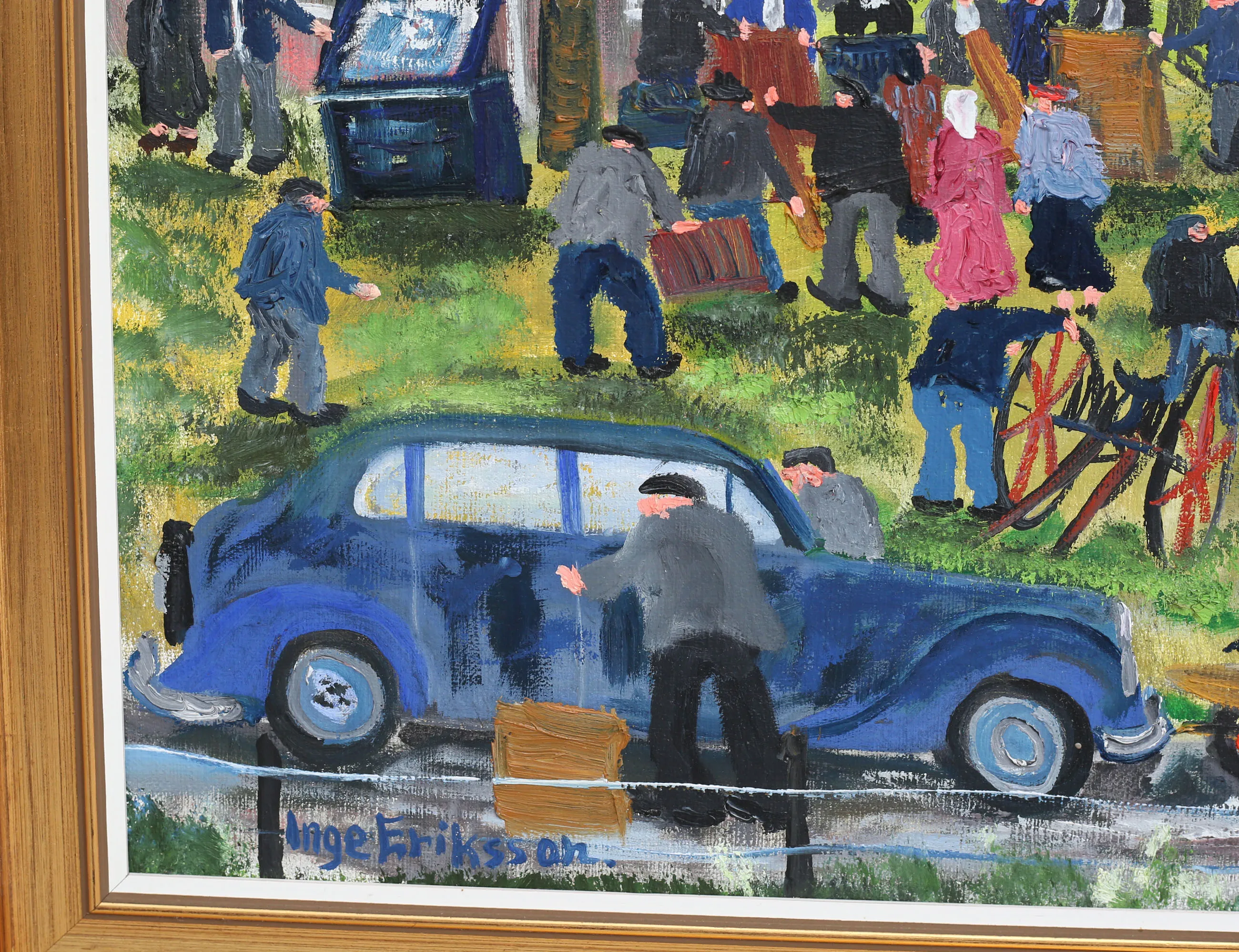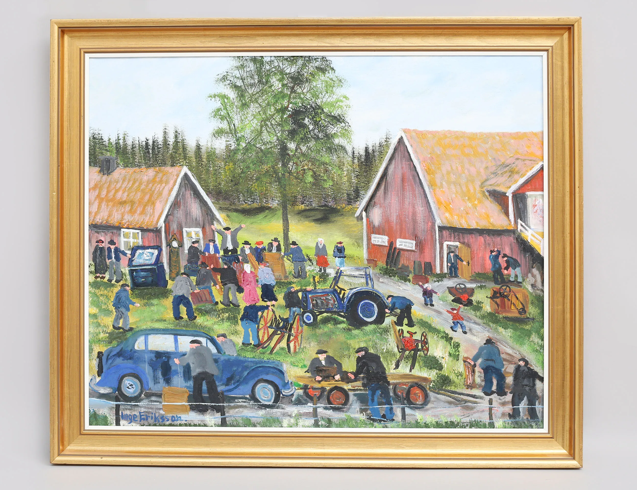 oljemålning på duk, "Småländsk Vårauktion i tidigt 50-tal", signerad även atergo, 50x61, rammått 59x70
