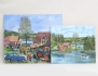 oljemålning på duk 2 stycken, Gårdsauktion 73x60, "Söndagsfiske Smålandstorpare" 55x46, signerade även atergo