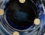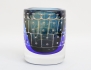 vas glas, ariel, cylindrisk geometrisk dekor i blått mot ofärgat glas, signerad 603-B, höjd 15, diameter 12 (obetydliga repor)