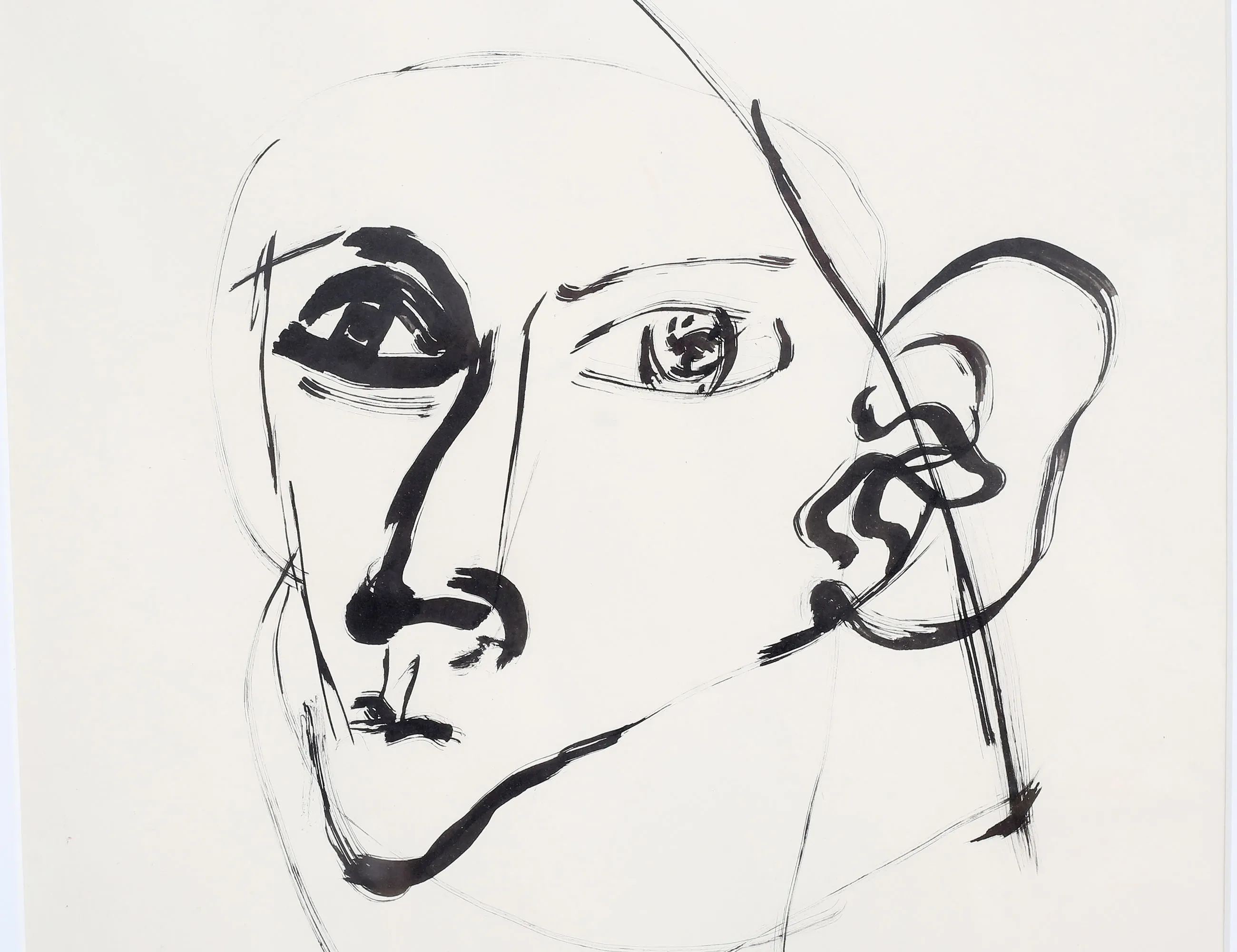 tuschteckning, "Karen Blixen", signerad, 56x40, rammått 72x52