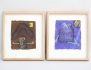 carborandumetsningar 1 par 44/60, kompositioner, signerade, bildmått 22x20, rammått 37x37 (den bruna med fläckar på passerpartout)