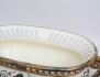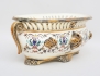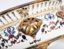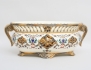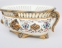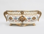 Rörstrand c.1900, genombruten kant, polykrom växtdekor samt förgylld, delvis iriserande glasyr, höjd 19, bredd 48x25