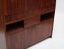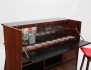 cocktailbar med 1 par barpallar, modell SK661 för J. Skaaning & Co 1960-tal, fronten med utfällbar skiva, inredning för flaskor och glas, nedtill utdragbar låda för flaskor samt mellanliggande låda, fotstöd i mässing, höjd 112, bredd 115, djup 40, citesintyg medföljer