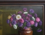oljemålning på duk, astrar i kopparkruka, signerad 2000, 61x75, rammått 76x91, bok och vykort medföljer