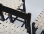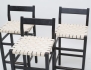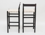 3 barstolar "Schablon", svartlackerad stomme i bok, sits i flätad sadelgjord, höjd 87, sitthöjd 66 (färgslitage på samtliga samt fläckar)