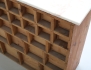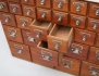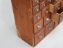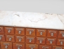 furu, 31 lådor, knoppar och handtag i kromad metall, senare stenskiva, proveniens: Allmäna BB Stockholm, historik: tidigare ägare arbetade på Allmäna BB och i samband med utrensning av inventarier införskaffades möbeln, höjd 85, bredd 103, djup 36 (bruksslitage, fanérskador vänster sida)