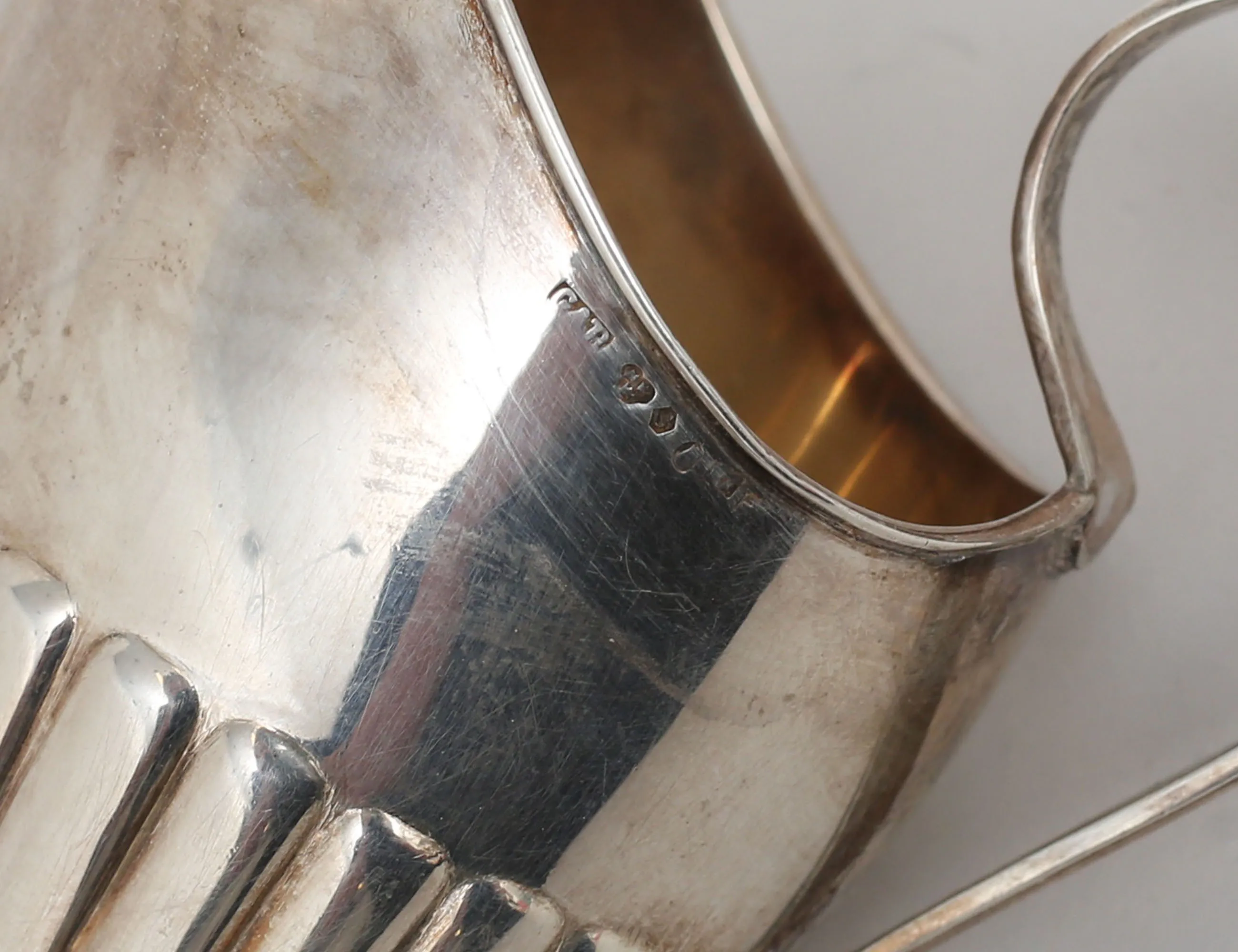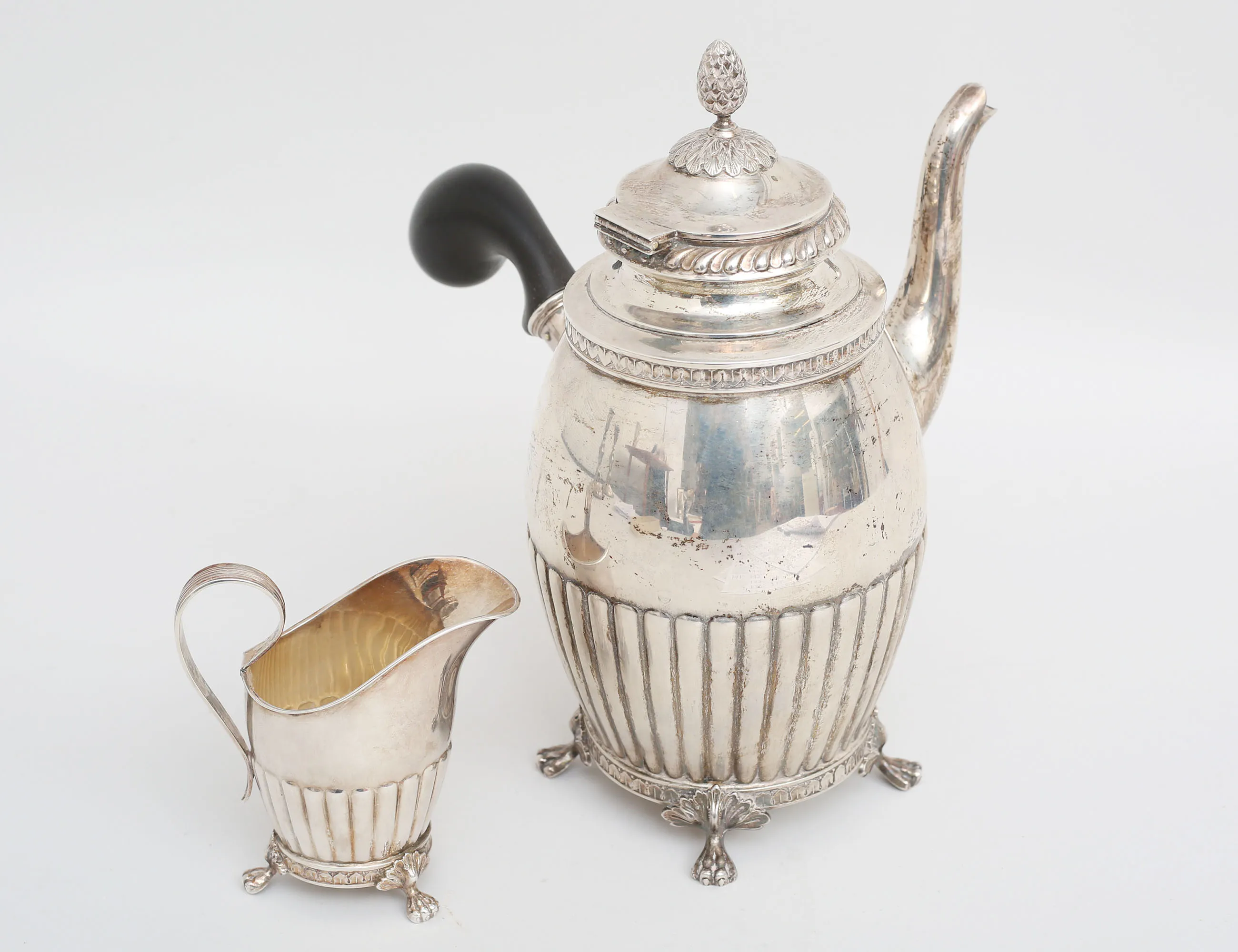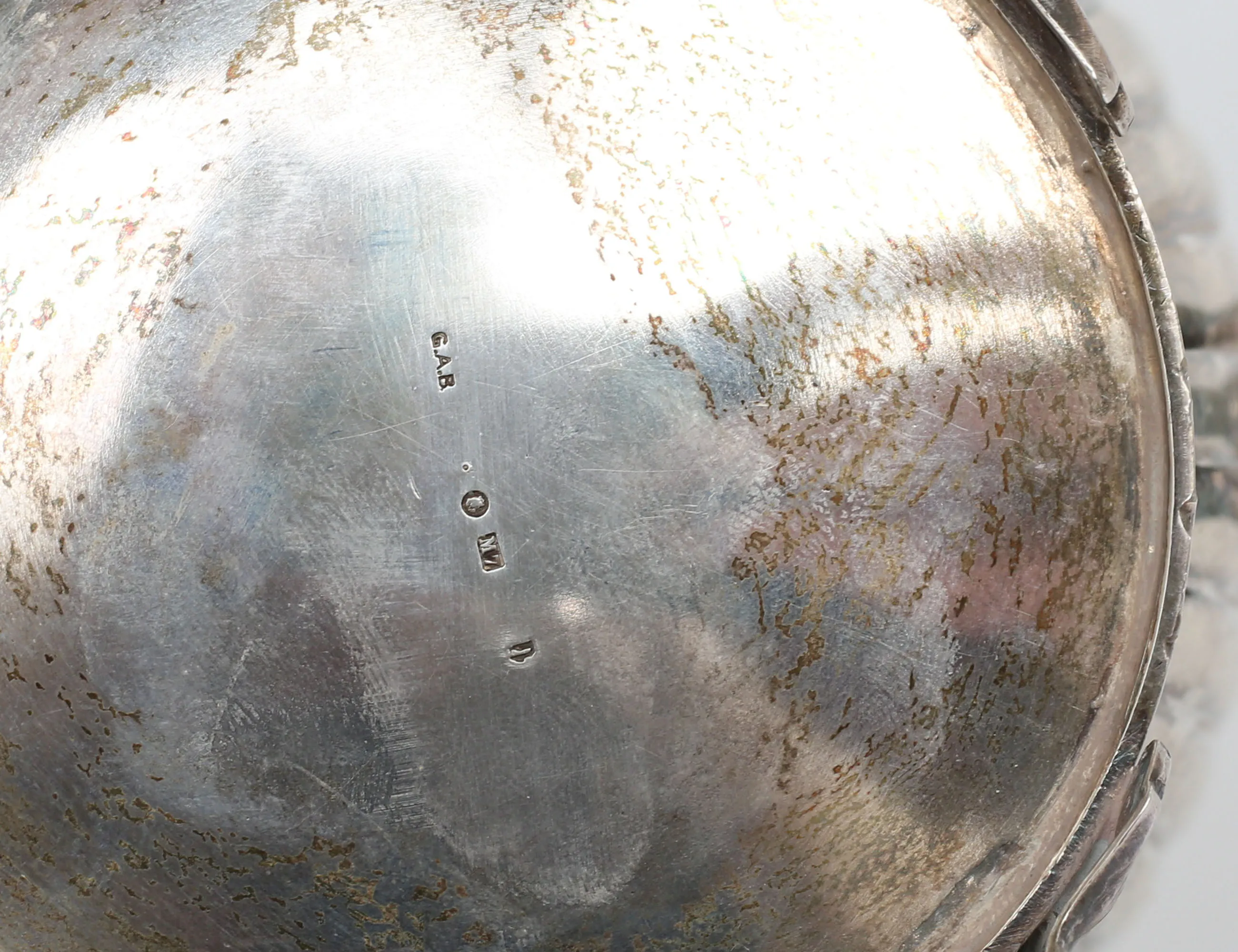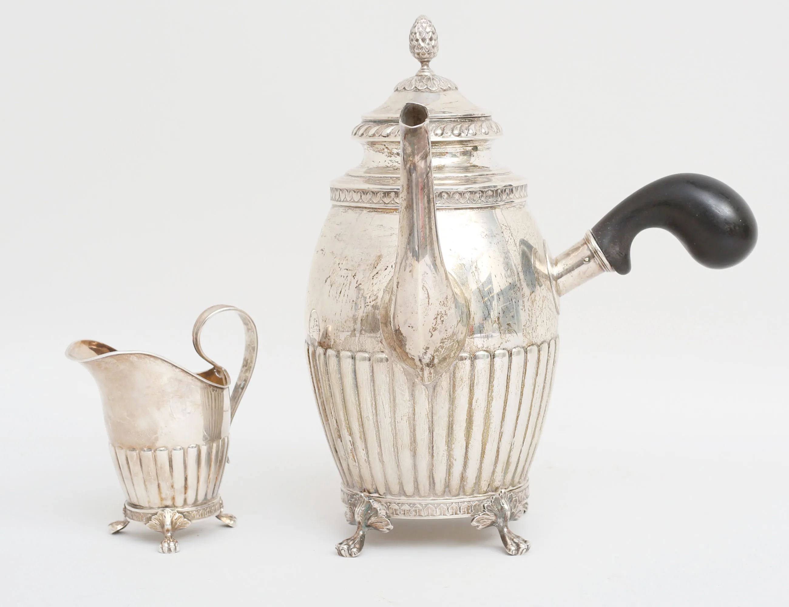 gustaviansk stil, GAB Stockholm 1914, tassfötter, lock med krönande pinjekotte, vikt 671 gam inklusive trähandtag, höjd 23/9 (2)