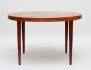 matbord runt, 1960-tal, jakarandafanér, 2 iläggsskivor varav en med sarg, höjd 71, diameter 115, total längd 225, citesintyg medföljer (bruksslitage)