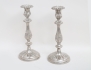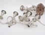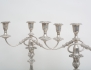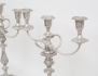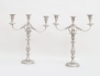 England 1800-tal, nysilver, ornamenterad dekor, för vardera 3 ljus, tvådelade och konvertibla till ljusstakar, fyllda bottnar, höjd 49, bredd 39 (2 ljushattar saknar skaft)