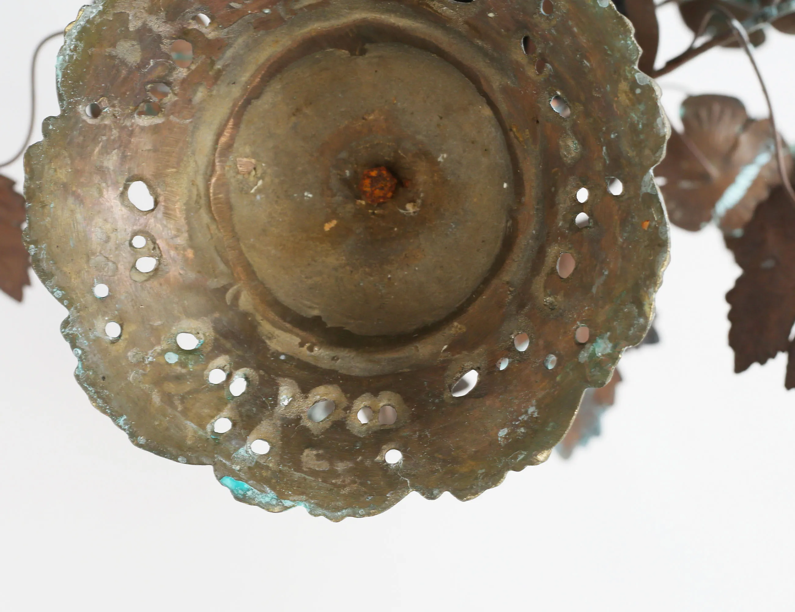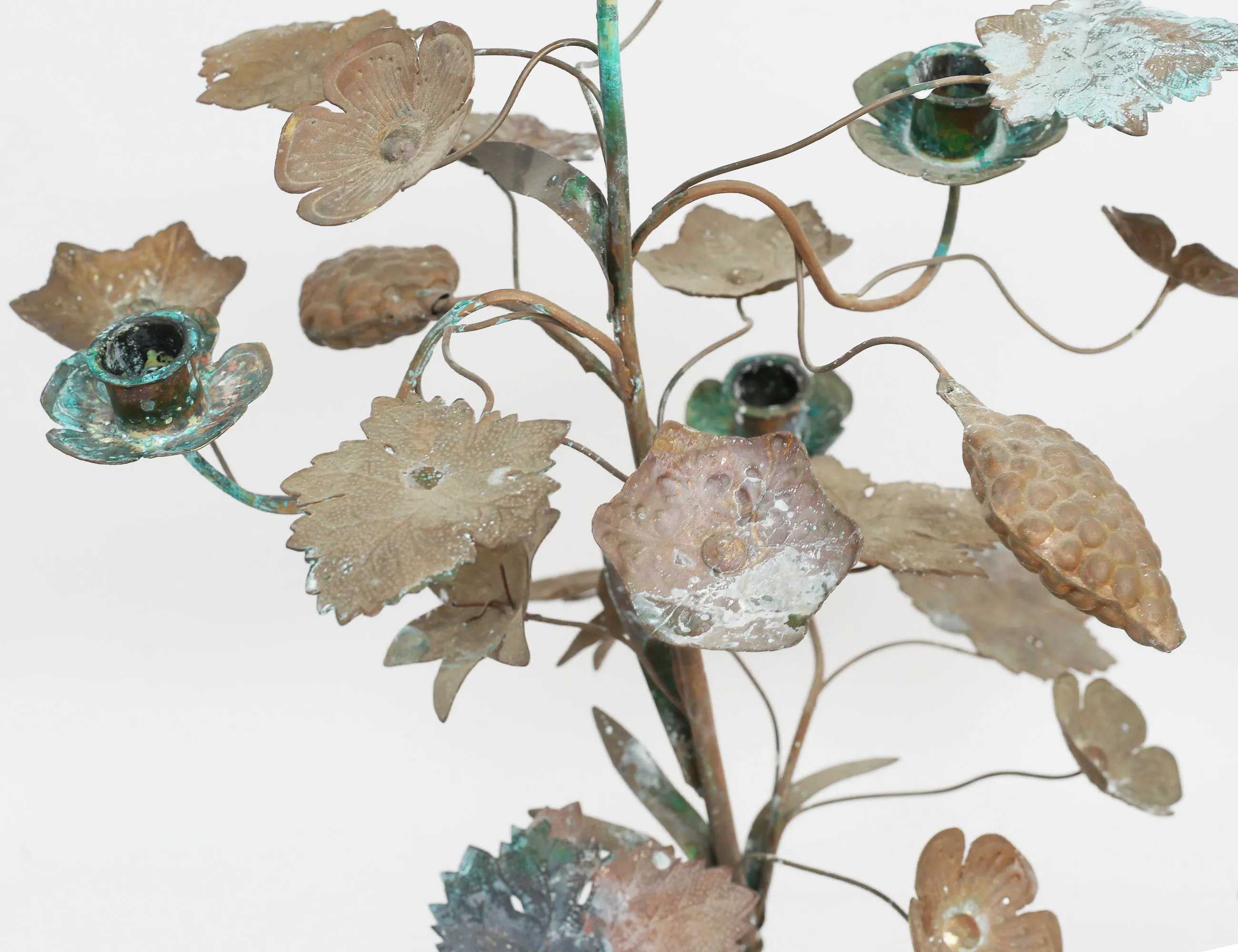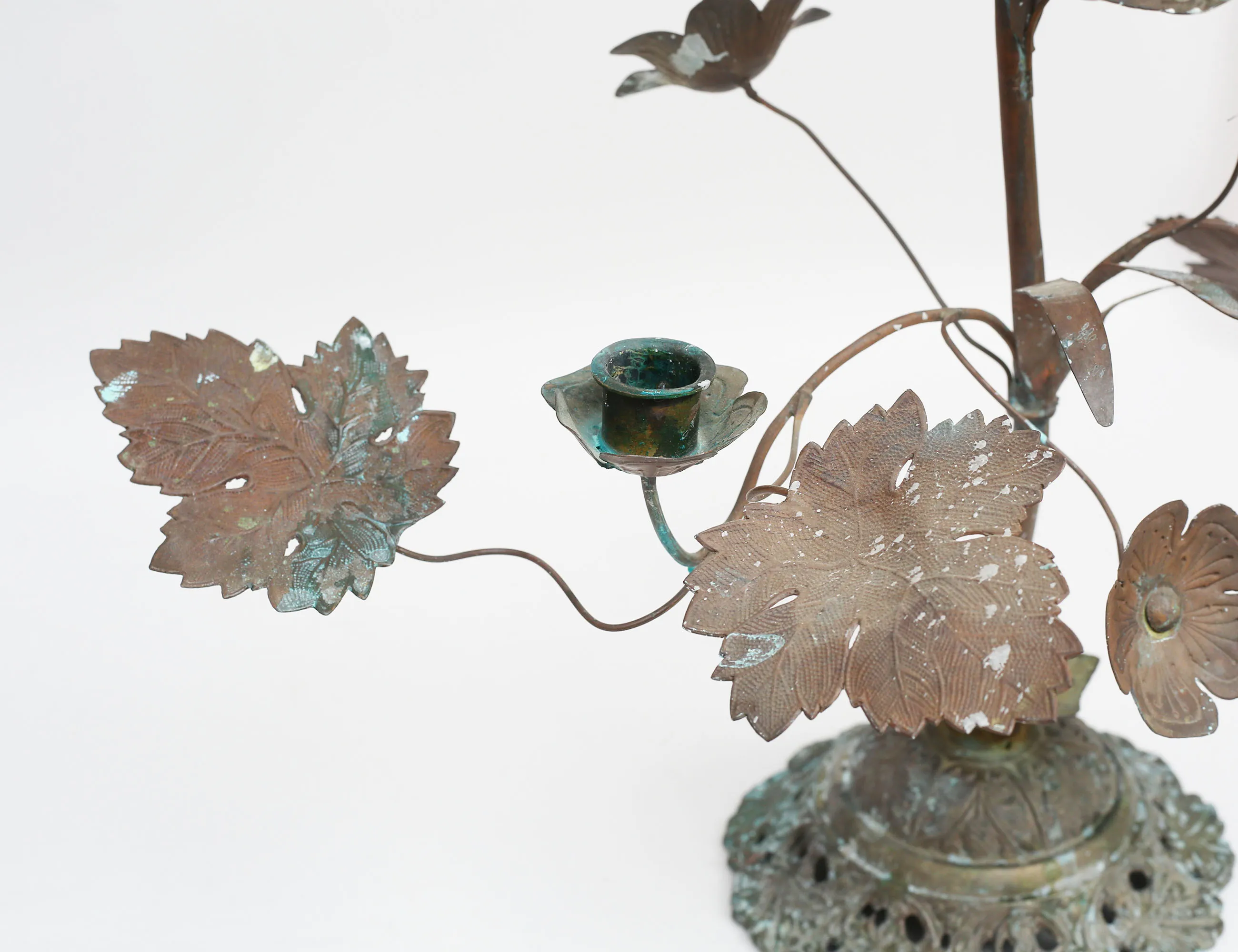 varav 1 par för vardera fem ljus, samt 1 för fem ljus, gjuten genombruten fot i mässing, i övrigt mässingsplåt formade som druvor och blad, höjd 61/52 (stearinrester)(3)