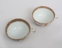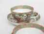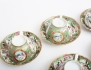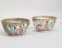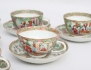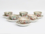 1800-talets senare del, 8 snarlika tekoppar med 6 fat, polykrom dekor av figurscener, delvis förgylld, höjd 5,5, diameter 10/14,5