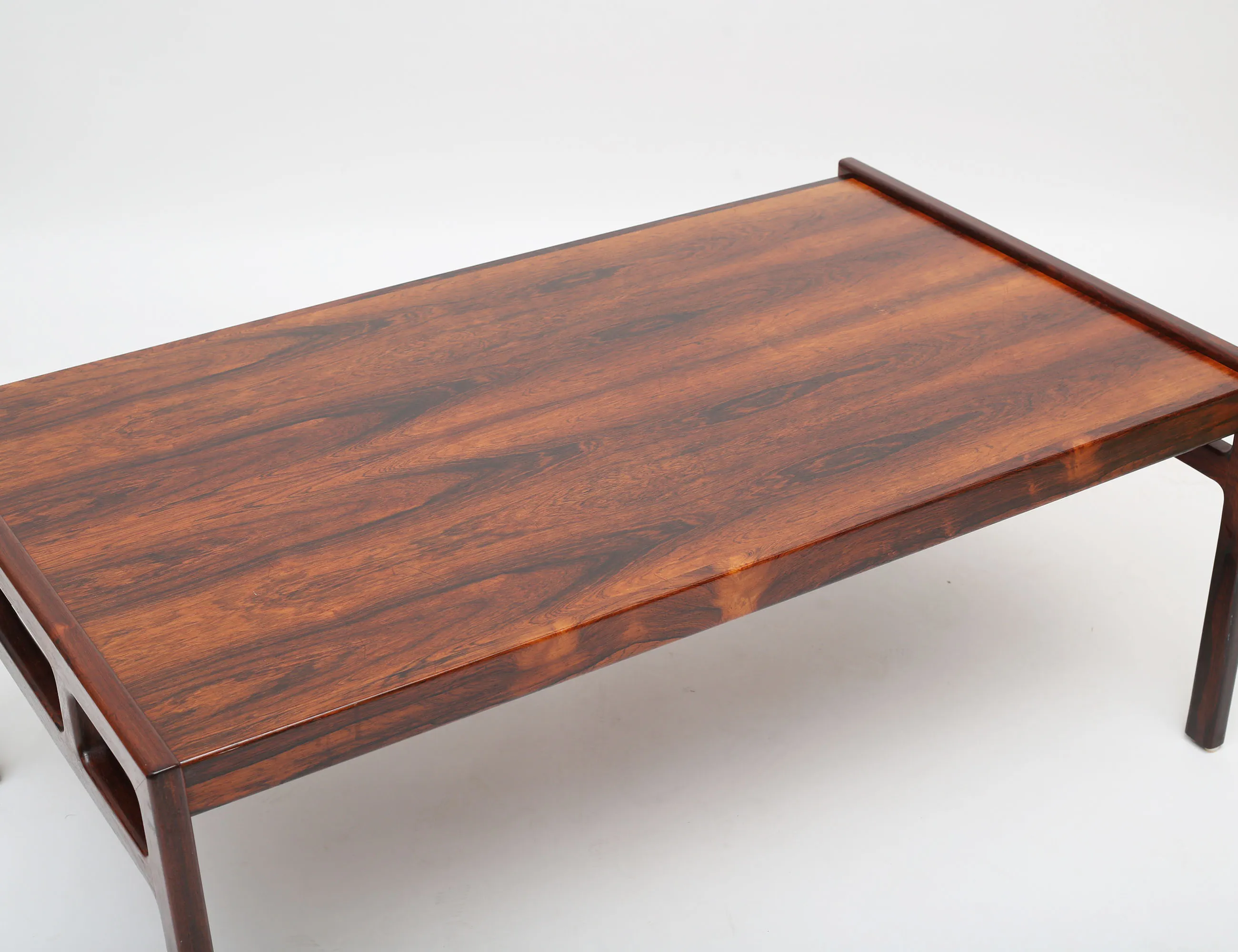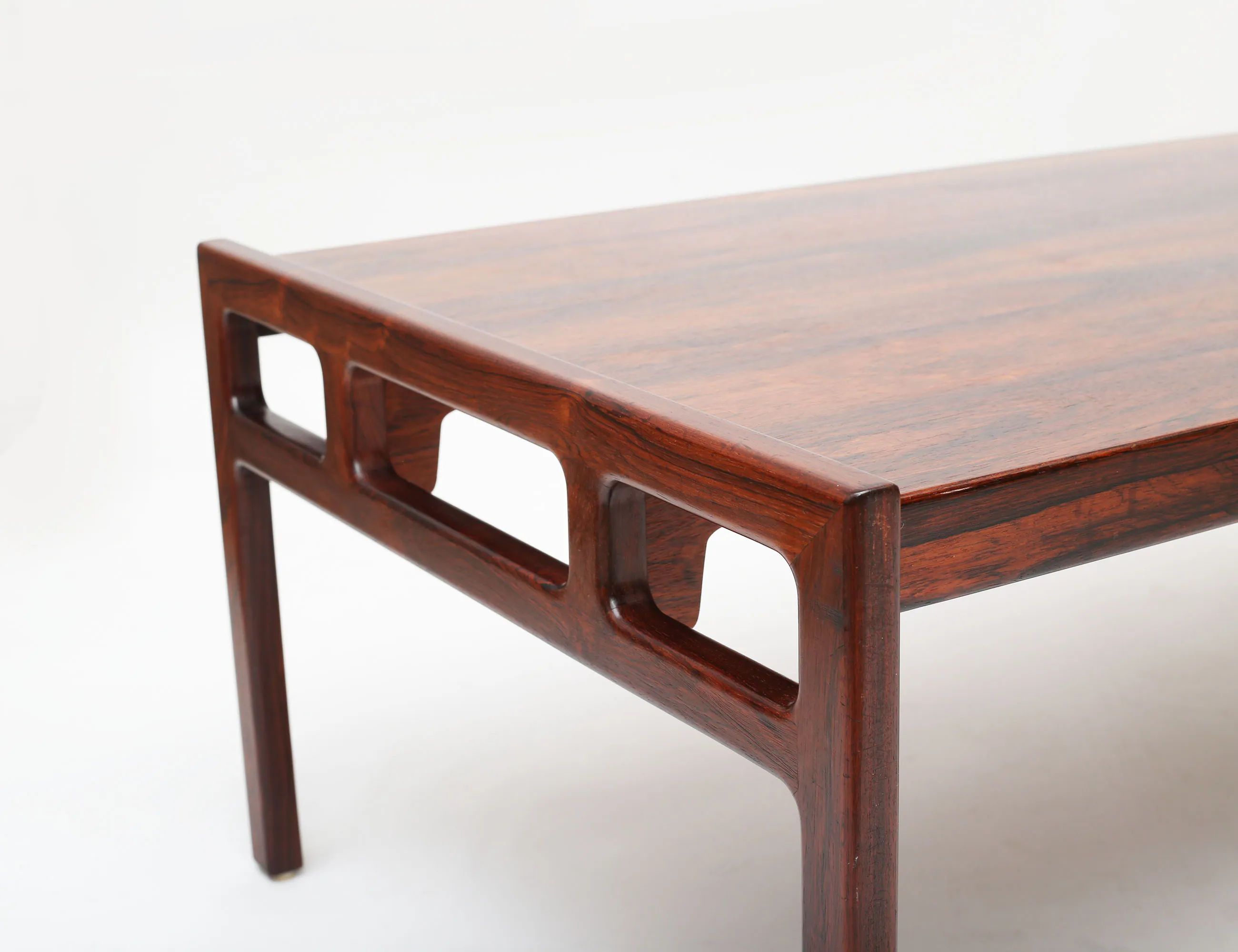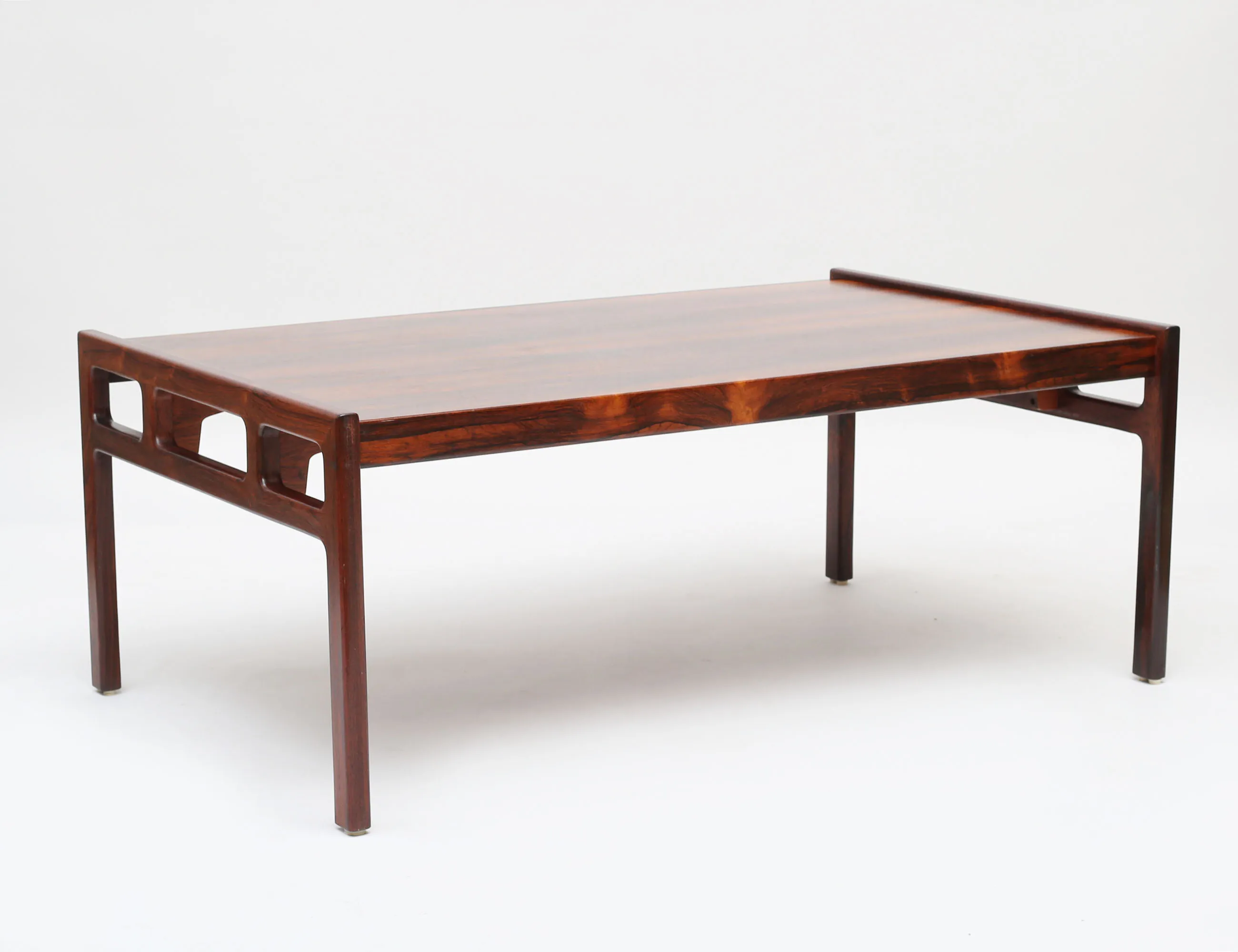 soffbord, JOC Möbler Vetlanda 1960/70-tal, fanerat med palisander, brännstämpel, höjd 49, bredd 125x75