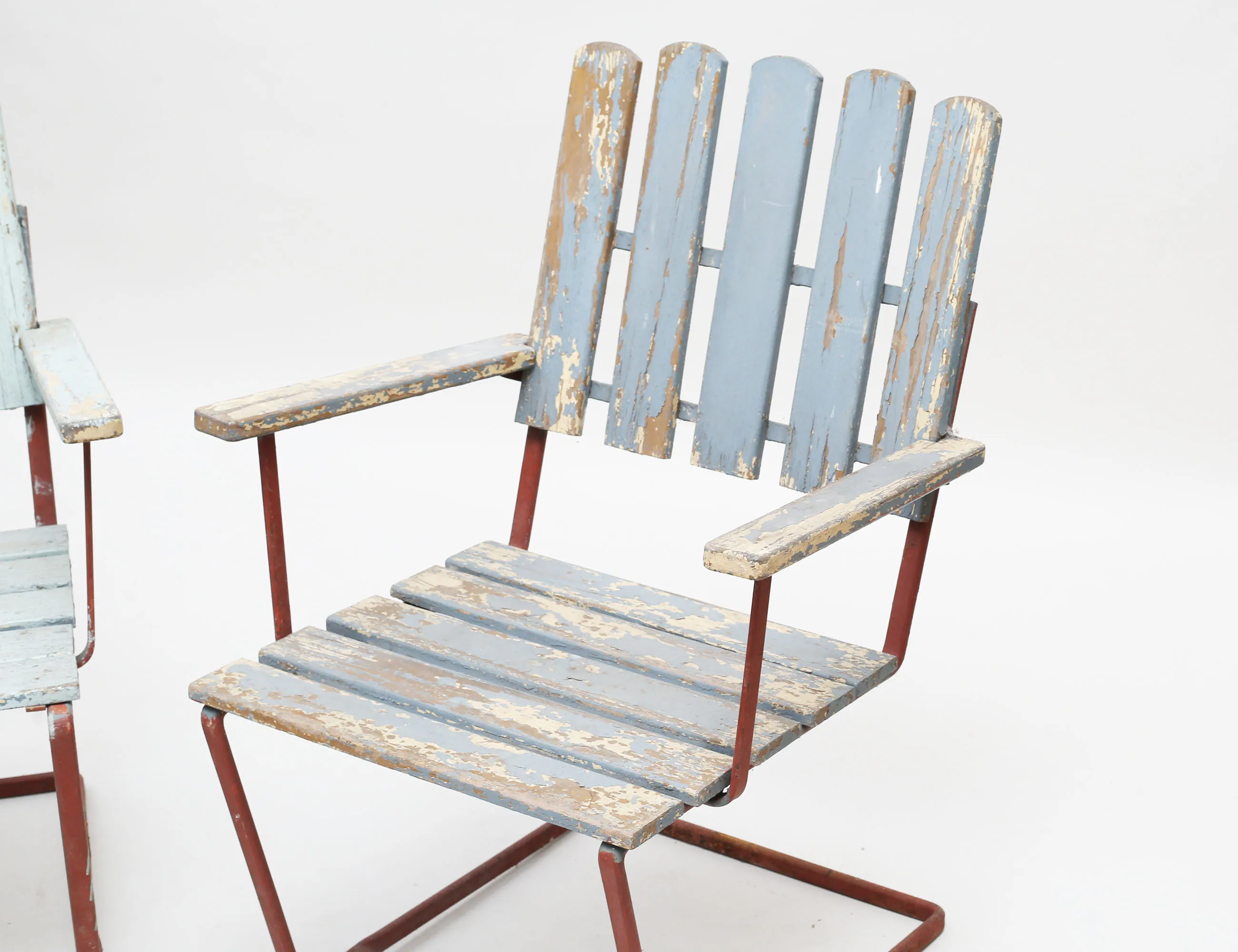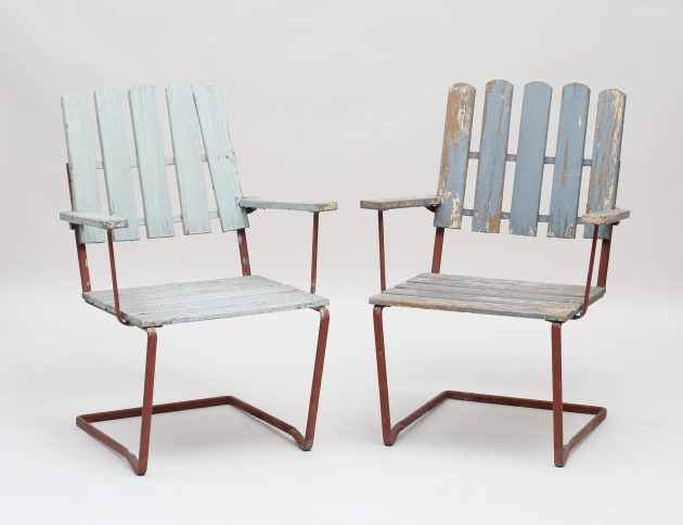 1900-talets första hälft, Arthur Lindqvist, höjd 86, sitthöjd 41, bredd 60(en stol med lös ribba i rygg, hårt bruksslitage, väderpatina)