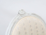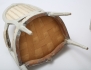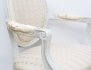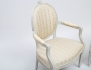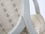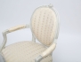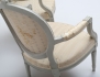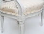 Erik Holm (mästare i Stockholm 1779-1814), träskuren dekor av bla. rosett, medaljongrygg, nedåt avsmalnande ben med kannelyrer, bemålade, fast stoppad sits och armlän, insidans baksarg signerad E Holm med kallstämpel, höjd 92, bredd 62 (renoverade, tyg med skador)