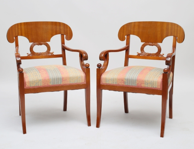 1900-talets mitt, mahogny, genombruten ryggbricka med lagerkrans, fast stoppad sits, höjd 86 (smärre bruksslitage)