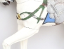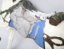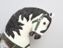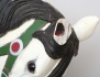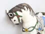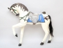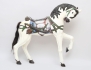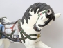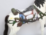 bemålad, träskuren, svans i tagel, ögon av glas, dekor av bla. sadel, träns, svärd samt schabrak, enligt uppgift köpt i Amerika, höjd 125, bredd 115 (torksprickor, ett öra samt en hov med avslag, retuscher)