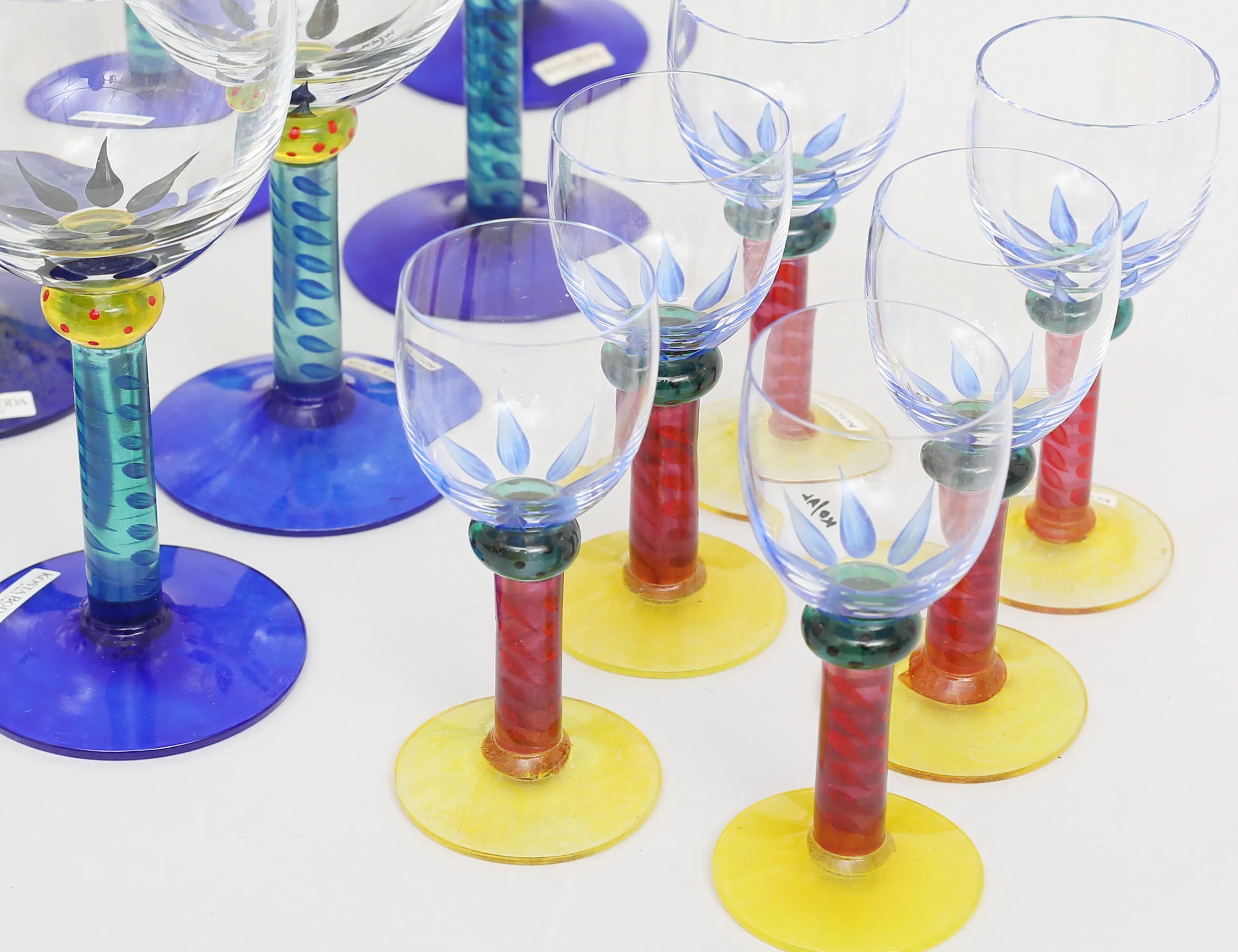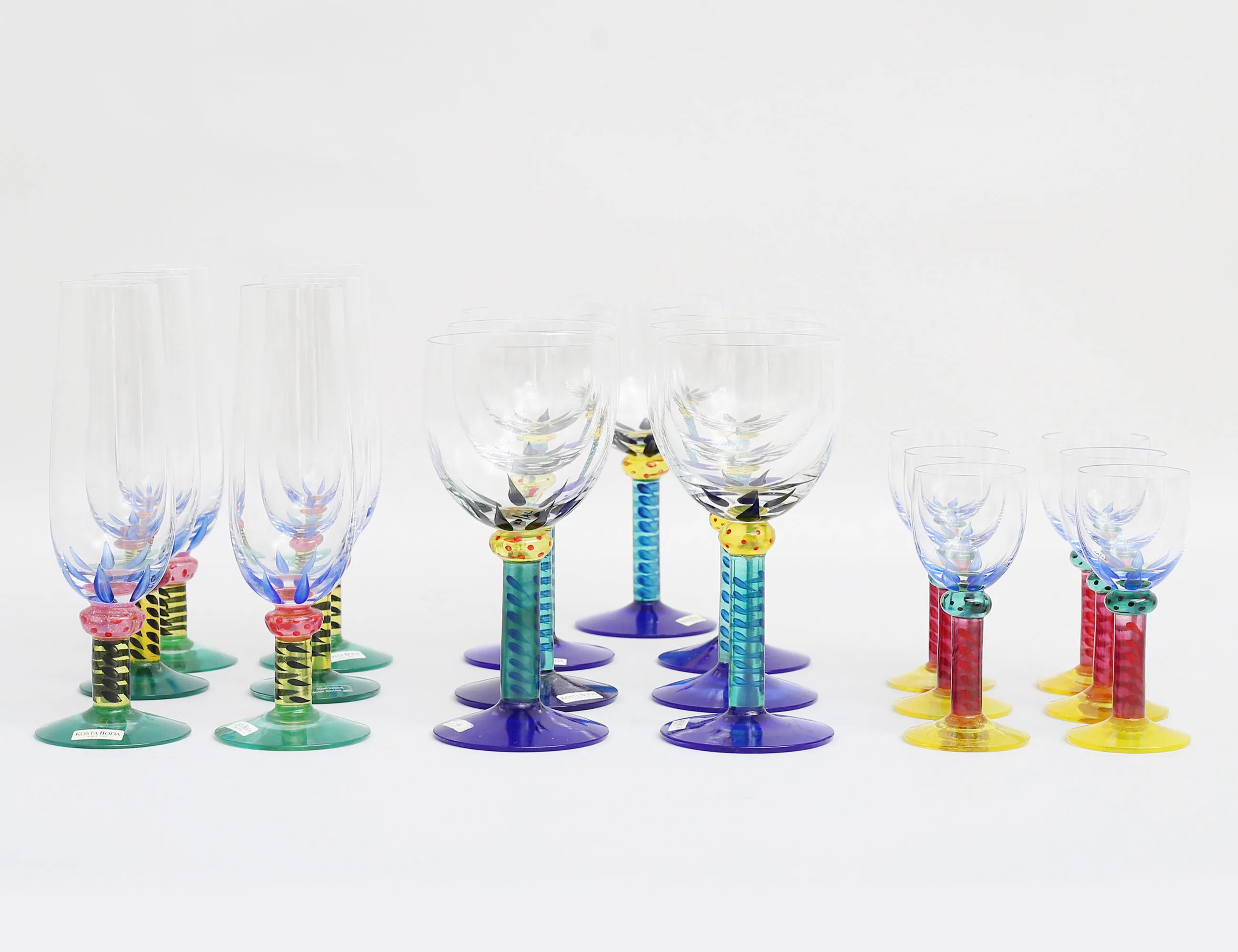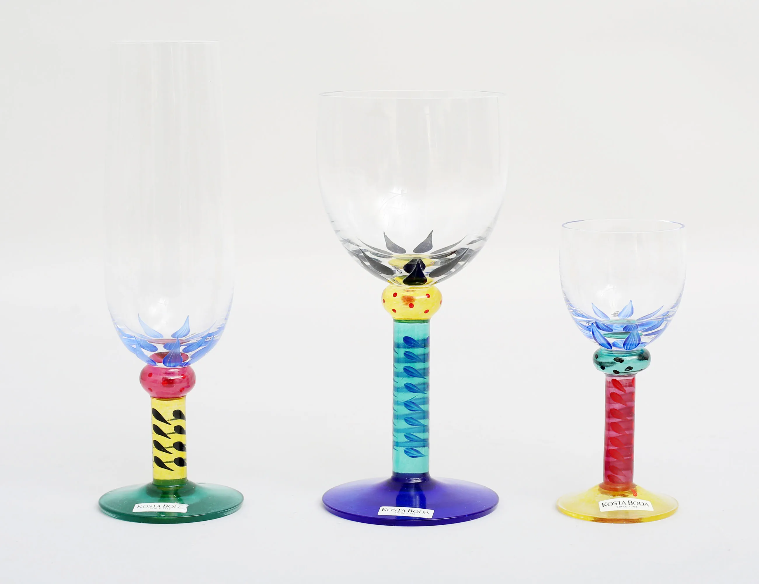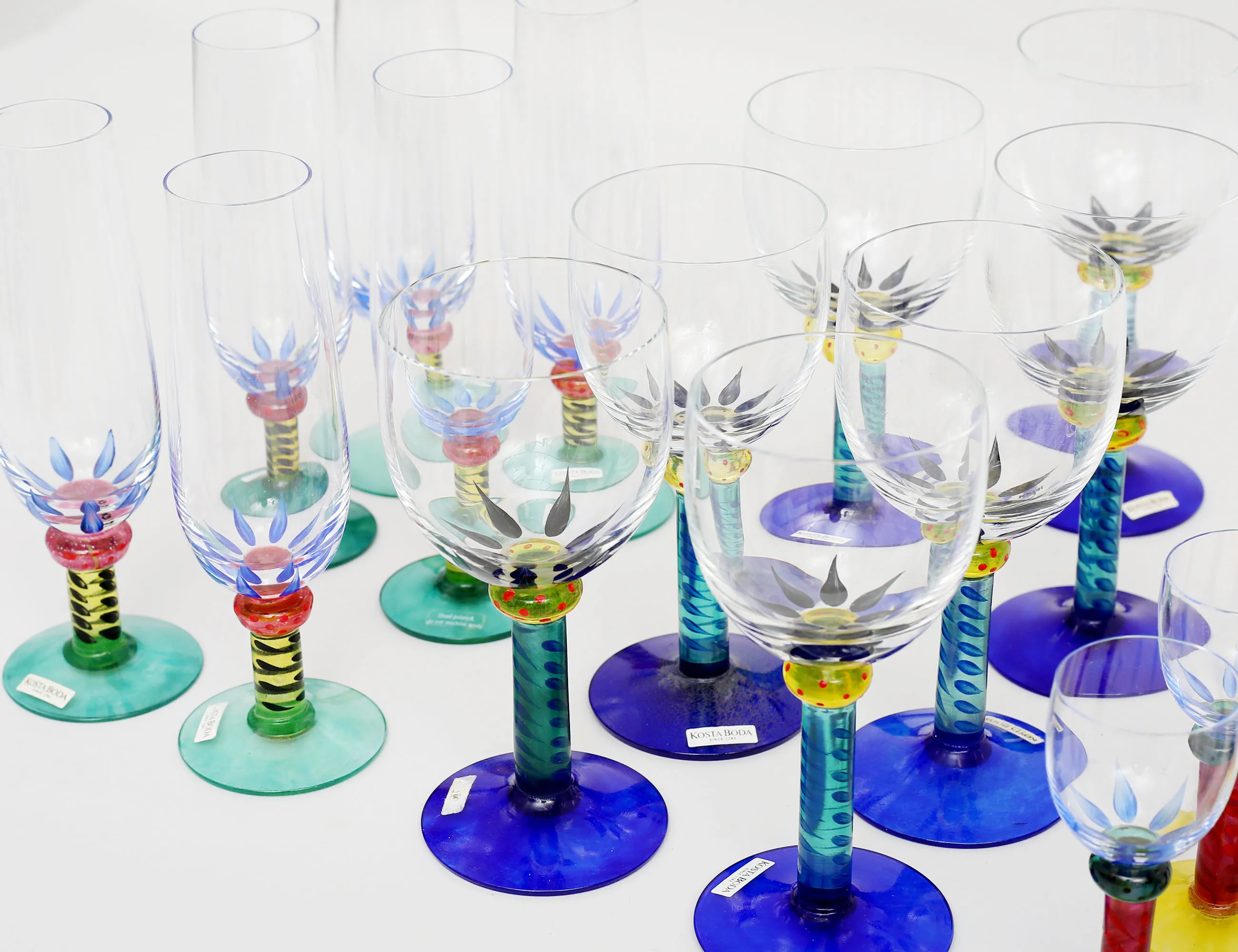 6 champagneglas, 7 vinglas samt 6 likörglas, "Palm Tree", signerade, merparten etikettmärkta, höjd 18,5, 16, 11 (19)