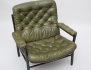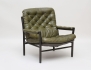 fåtölj "Kavaljer", DUX 1900-talets andra hälft, stomme av mörkbetsat trä, sits, rygg och armstöd med djuphäftad grön skinnklädsel, höjd 83, bredd 83 (smärre bruksslitage)