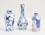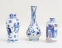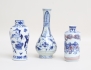 vas 1800-tal, bottenstämpel, höjd 14,5, 2 vaser 1900-tal, höjd 12,5/18,5, blåvit underglasyrdekor (3)