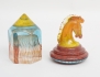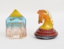 skulptur i form av hästhuvud, ur serien "Bon Bon", signerad 1989-2002, höjd 10, skulptur "Penna" modell 99160, osignerad, höjd 9,5 (2)
