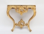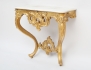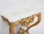 träskuren och pastellagedekor, förgylld med bladguld och slagmetall, profilerad vit marmorskiva, höjd 74, bredd 74, djup 33