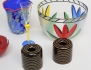 snapsglas "Clown", höjd 19, ljusstakar 1 par höjd 7,5, Anne Nilson Orrefors, skål och ljusstake Ulrica Hydman Vallien, höjd 14,5/12, skål "Atoll" Anna Ehrner, höjd 6, vas signerad Carti Åselius-Lidbeck, Johansfors, höjd 14,5