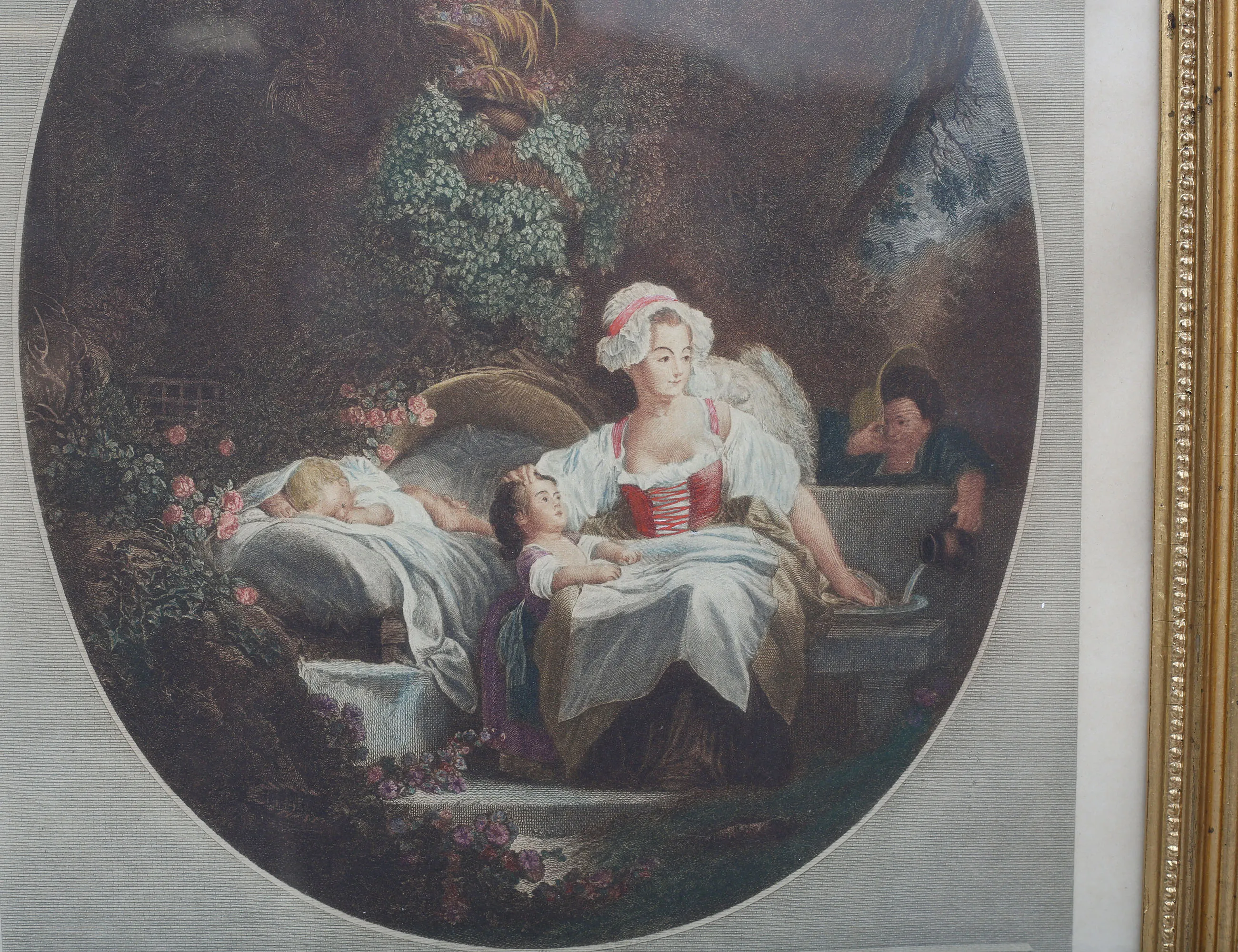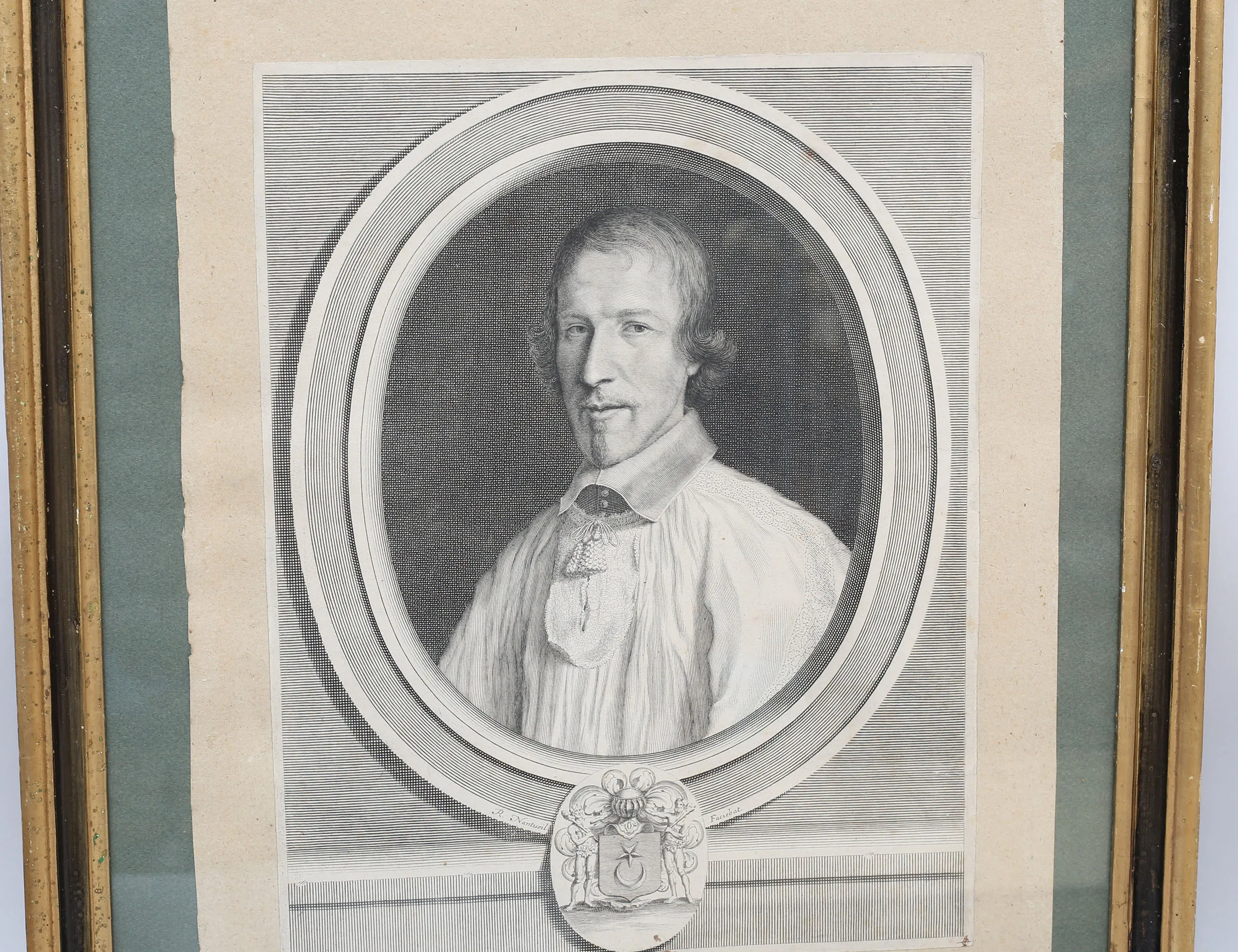 föreställande Henry de Thiard respektive okänd ädling, 1700-tal, litografiskt förlagt tryck efter äldre kopparstick "La Bonne Mere", förgyllda ramar, bildmått 38x28, 33x25, 37x28, rammått 54x43, 56x43, 50x42 (3)