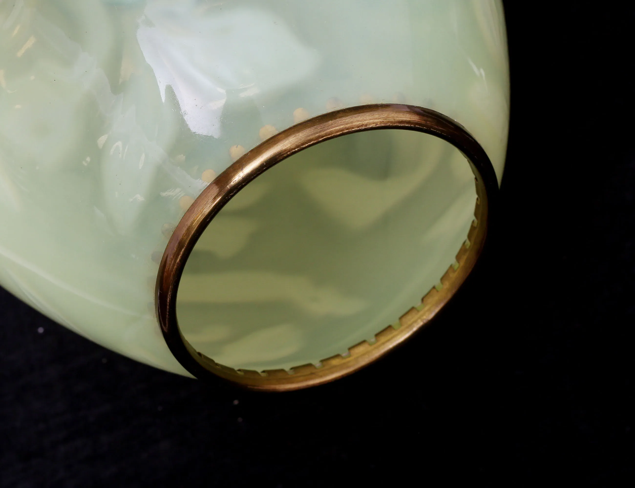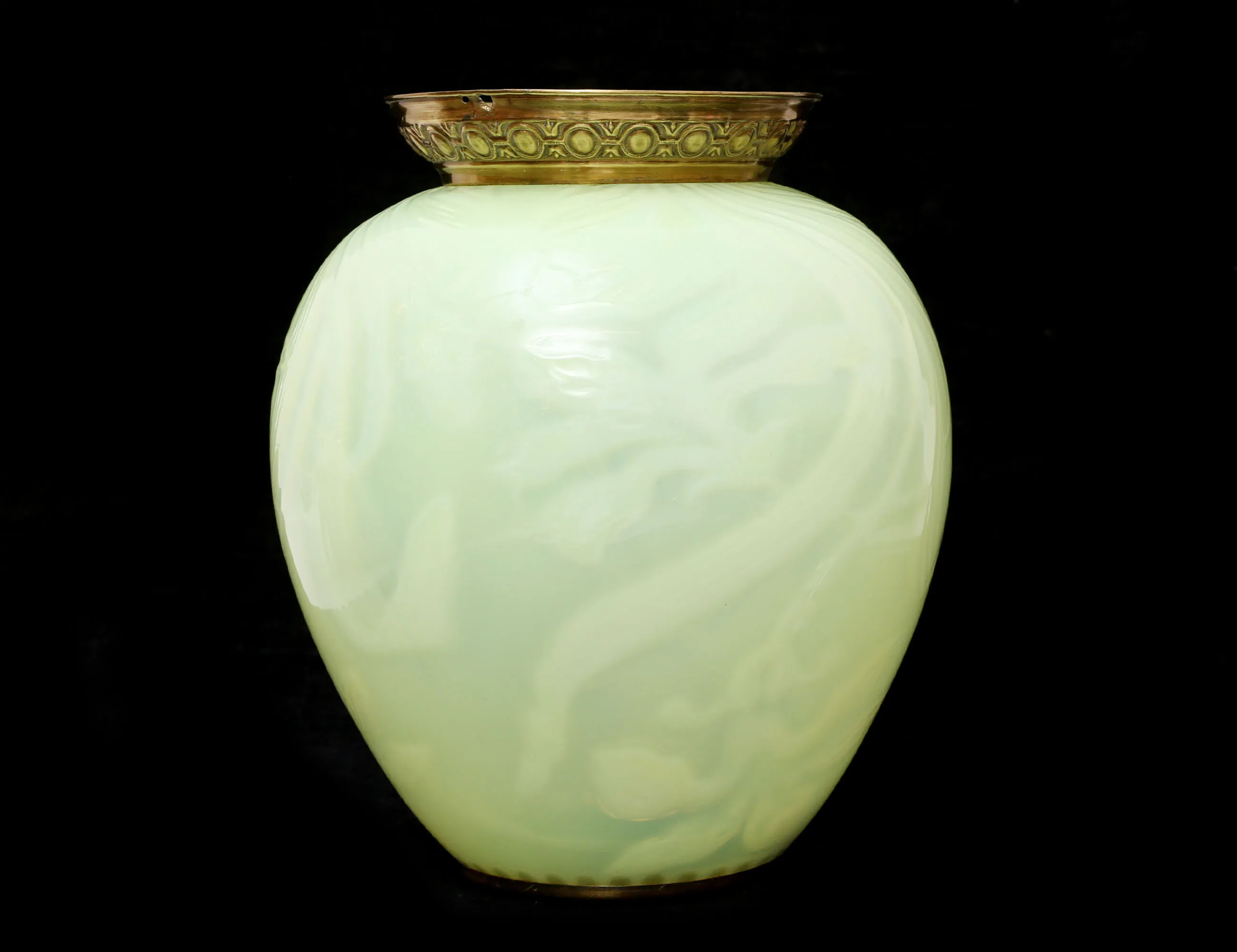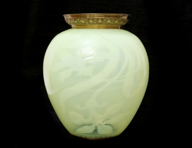 jugend c.1900, gröntonat underfångsglas, montage i mässing, höjd 27