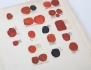 ca. 500 stycken, bla. kungliga, Oscar II, Gustav IV Adolf, Ordenssigill, ordnade i album, bok Svensk Heraldik medföljer