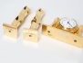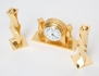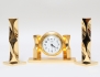 ljusstakar 1 par samt bordsur, Vallonmässing Söderköping signerade, uret med guldplätering 24k, urtavla märkt Schöler Swiss Quarz, höjd 16/10,5, bredd 17 (ljusstakar med gåvoinskription undertill) (3)