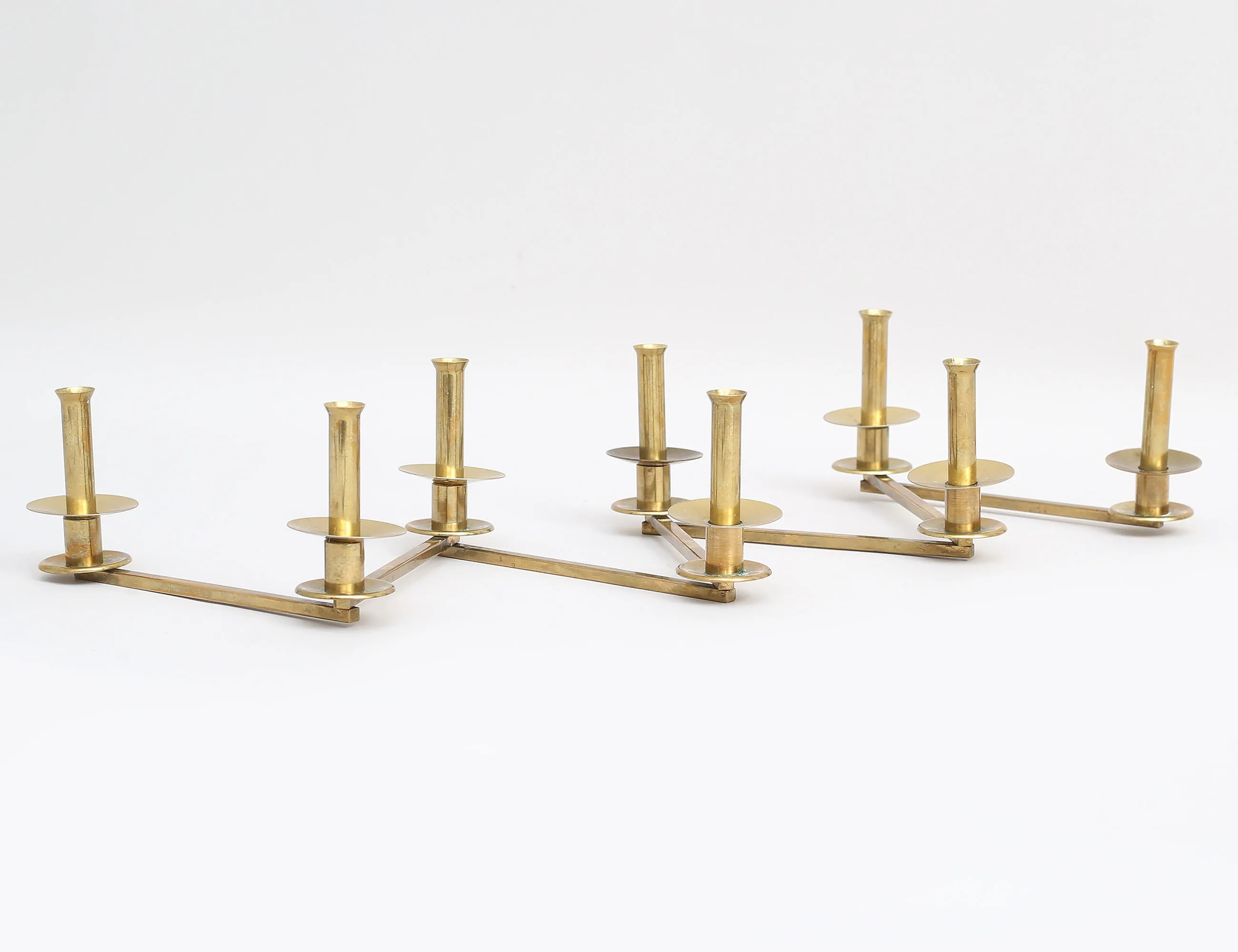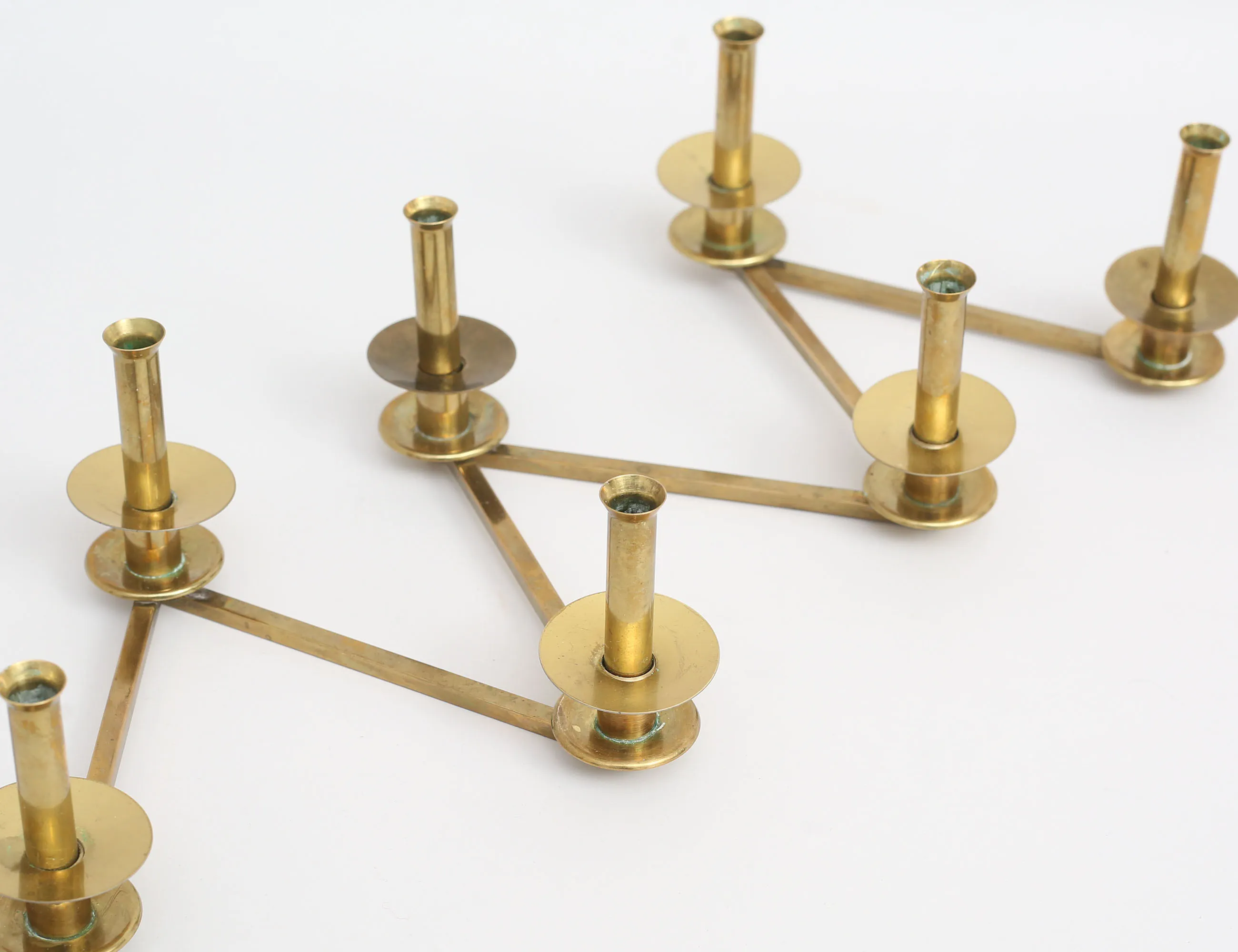 ljusstake "Margareta-staken",1940/50-tal, för 8 ljus, mässing, justerbar, längd 96 (smärre bruksslitage, en ljushatt med mindre buckla)